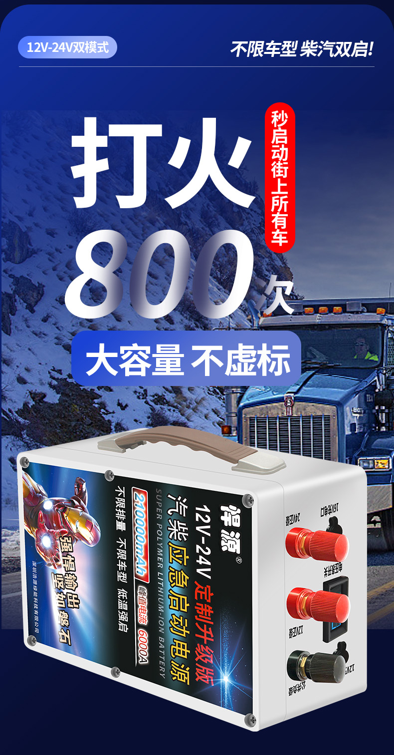 ДомМагазинАвтомобильный аварийный источник питанияАварийное пусковое устройство Hanyuan для автомобилей, зарядка и зажигание аккумуляторов 12 В/24 В, пусковое устройство для грузовиков большой емкости