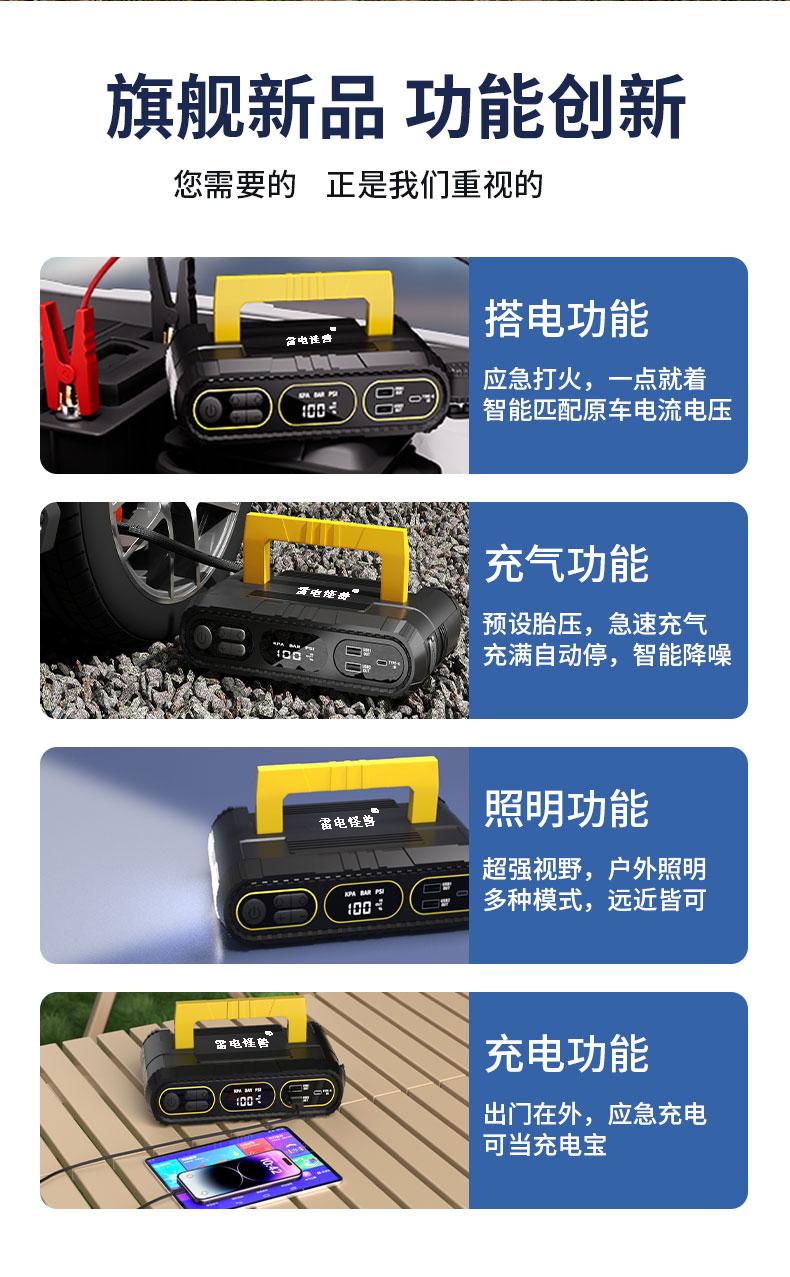 ДомМагазинАварийный источник питания транспортного средстваАварийный пусковой механизм Thunder Monster для автомобиля, автомобильный воздушный насос, умный стартер All-in-One