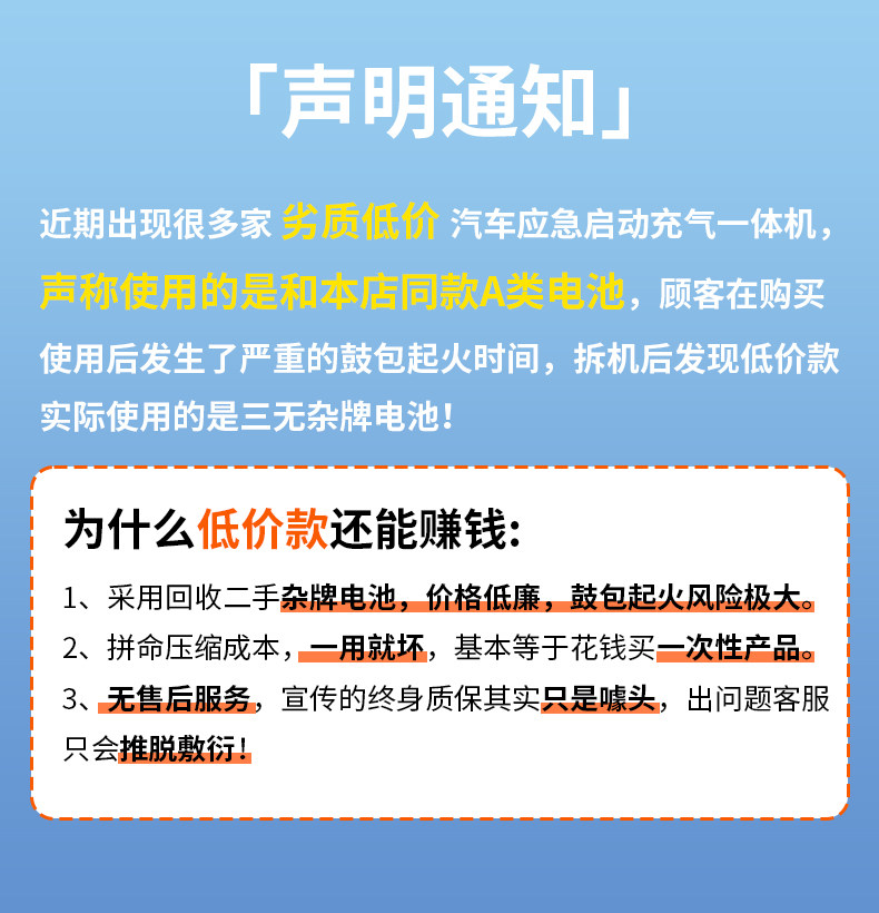 | сортировать по цвету | [Не боится экстремальной жары или холода] Путешествуйте спокойно и в безопасности. [Авторитетная сертификация] Номер сертификата авторитетной сертификации 3C: 2025010914799889. Машина «все в одном» / черная [Запуск/Накачка/Освещение/Внешний аккумулятор/Контроль давления в шинах] Утолщенные зажимы аккумулятора + неограниченный рабочий объем + многофункциональный наконечник + кабель для зарядки. Машина «все в одном» / оранжевая [Запуск/Накачка/Освещение/Внешний аккумулятор/Контроль давления в шинах] Утолщенные зажимы аккумулятора + неограниченный рабочий объем + многофункциональный наконечник + сумка для хранения. Машина «все в одном» / оранжевая [Запуск/Накачка/Освещение/Внешний аккумулятор/Контроль давления в шинах] Утолщенные зажимы аккумулятора + неограниченный рабочий объем + многофункциональный наконечник + сумка для хранения. Все в одном устройстве / оранжевый [Стартер/Насос/Освещение/Внешний аккумулятор/Измерение давления в шинах] Утолщенные зажимы аккумулятора + неограниченный рабочий объем + многофункциональная насадка + авиационная сумка, все в одном устройстве / оранжевый. [Стартер/Насос/Освещение/Внешний аккумулятор/Измерение давления в шинах] Интеллектуальный зажим блокировки обратного хода + неограниченный рабочий объем + многофункциональная насадка + сумка для хранения, все в одном устройстве / оранжевый. [Стартер/Насос/Освещение/Внешний аккумулятор/Измерение давления в шинах] Интеллектуальный зажим блокировки обратного хода + неограниченный рабочий объем + многофункциональная насадка + сумка для хранения, все в одном устройстве / оранжевый. [Стартер/Насос/Освещение/Внешний аккумулятор/Измерение давления в шинах] Интеллектуальный зажим блокировки обратного хода + неограниченный рабочий объем + многофункциональная насадка + авиационная сумка. ✅Вышеуказанные модели: [Аварийное пусковое устройство + Крепление на автомобиль]. [Многофункциональный воздушный насос «все в одном»] Пуск + накачивание воздуха + освещение + внешний аккумулятор. ✅Следующие модели: [Аварийные пусковые устройства] [Без функции накачивания] Внешнее пусковое устройство + освещение. [Аварийный источник питания] Неограниченный рабочий объем ★ Мгновенный запуск с нулевого заряда батареи ★ Утолщенные зажимы батареи ★ Кабель для передачи данных. [Аварийный источник питания] Неограниченный рабочий объем ★ Мгновенный запуск с нулевого заряда батареи ★ Утолщенные зажимы батареи ★ Сумка для хранения. [Аварийный источник питания] Неограниченный рабочий объем ★ Мгновенный запуск с нулевого заряда батареи ★ Интеллектуальный зажим защиты от обратного подключения ★ Кабель для передачи данных. [Аварийный источник питания] Неограниченный рабочий объем ★ Мгновенный запуск с нулевого заряда батареи ★ Интеллектуальный зажим защиты от обратного подключения ★ Сумка для хранения. [Аварийный источник питания] 8000 мАч неограниченный рабочий объем ★ Мгновенный запуск с нуля ★ Утолщенные клеммы аккумулятора ★ Сумка для хранения, [Аварийный источник питания] 8000 мАч неограниченный рабочий объем ★ Мгновенный запуск с нуля ★ Умный зажим с функцией блокировки обратного хода ★ Сумка для хранения, [Аварийный источник питания] 16000 мАч неограниченный рабочий объем ★ Мгновенный запуск с нуля ★ Умный зажим с функцией блокировки обра