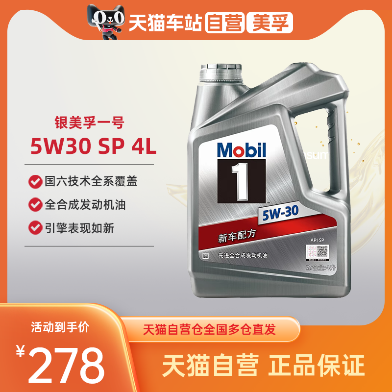 ДомМагазинАвтомобильное моторное маслоАвтозаправочная станция Tmall, самообслуживаемая, моторное масло Mobil 1, Mobil 5W 30SP полностью синтетическое автомобильное моторное масло, 5W-30 4 л.
