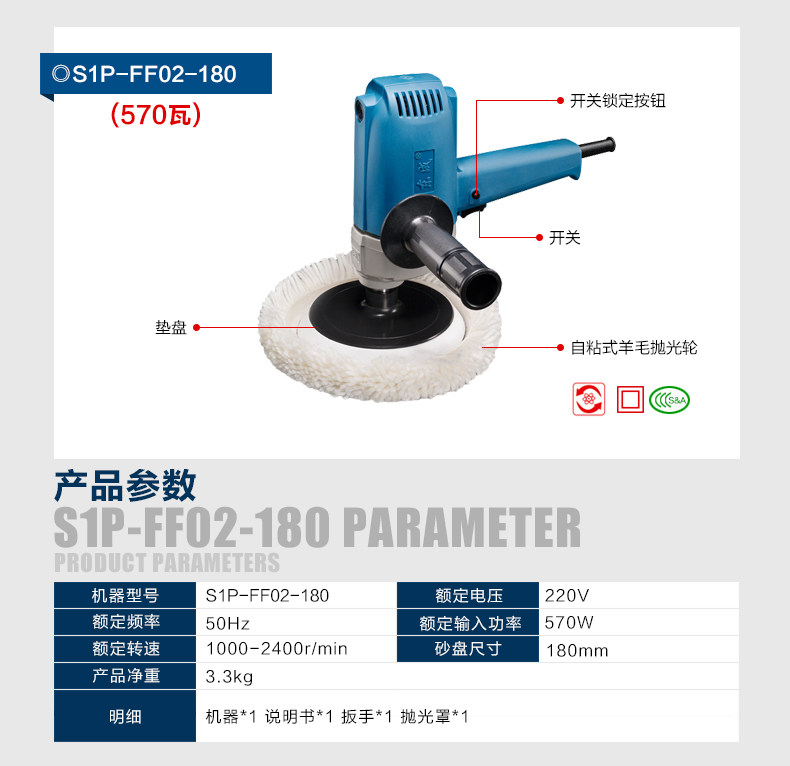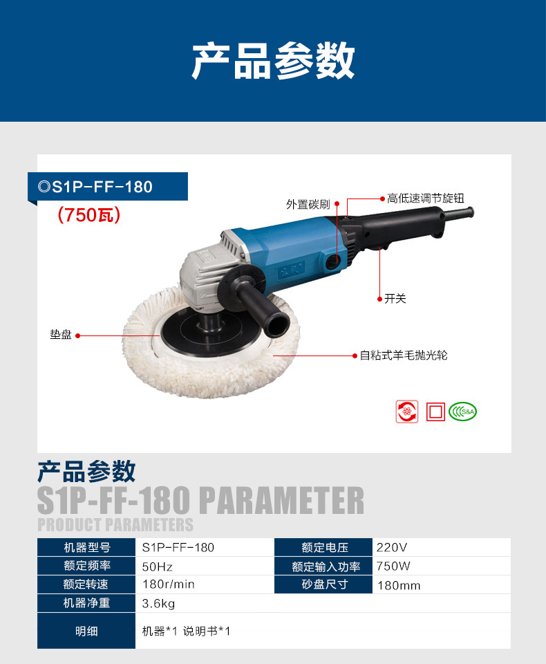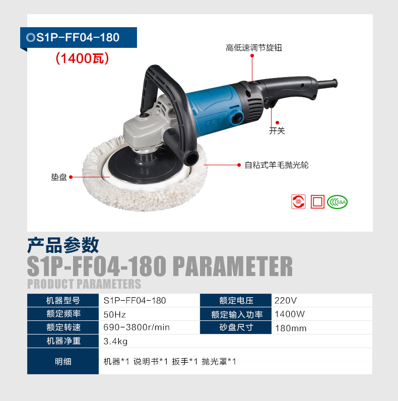 | сортировать по цвету | (Полировальная машина S1P-FF02-180S) 950 Вт, (Полировальная машина S1P-FF04-180) 1400 Вт, (Полировальная машина S1P-FF05-180) 1250 Вт, (Полировальная машина S1P-FF06-180) 1400 Вт |