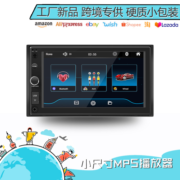新款通用带旋钮按键6.2寸车载影音mp4通用机 小尺寸汽车互联mp5车机主机 车载双锭MP5 170*96mm
