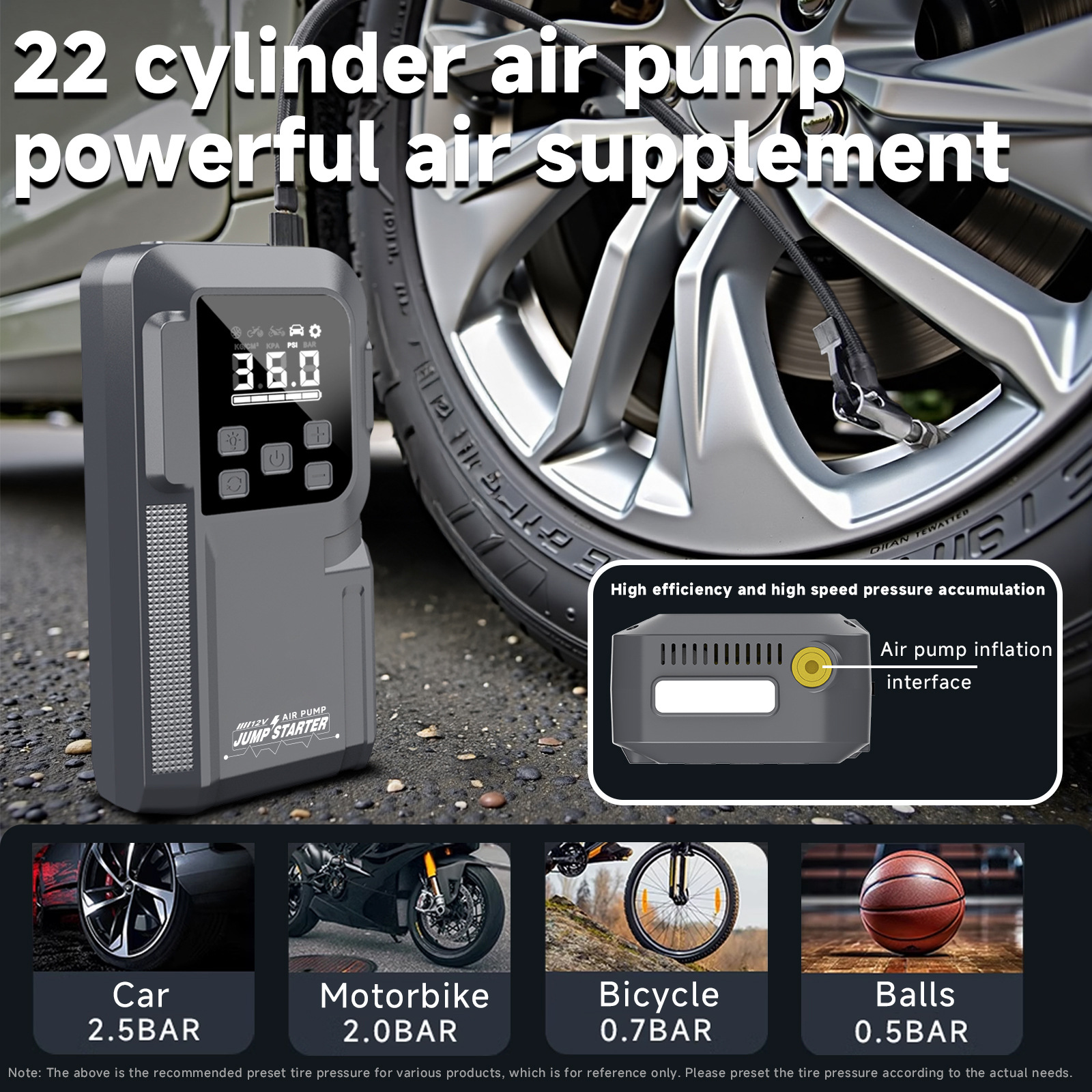 Будьте первым, кто оставил отзыв на “Автомобильная зарядная станция, зарядная станция для мотоциклов, автомобильный воздушный насос, насос для шин, аварийный источник питания для запуска автомобиля”
