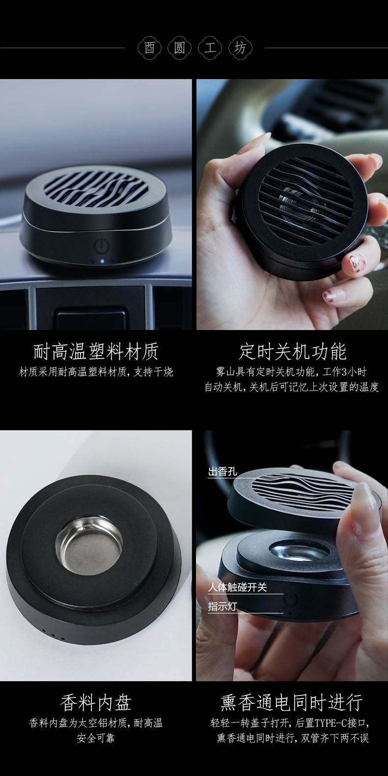 Автомобильная электрическая курильница Wushan с интеллектуальным контролем температуры, диффузор типа C из агарового дерева, бренд Xiyou Yuanyuan Workshop