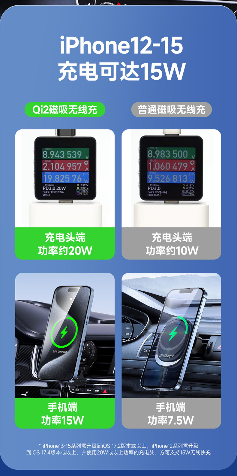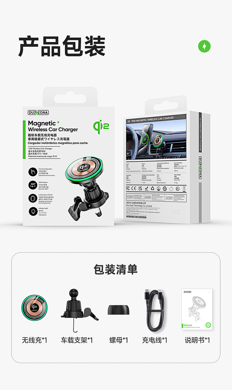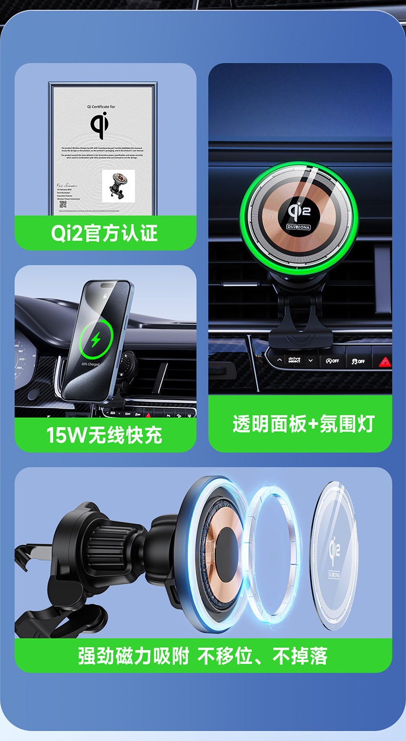 Прозрачное магнитное беспроводное автомобильное зарядное устройство Qi2