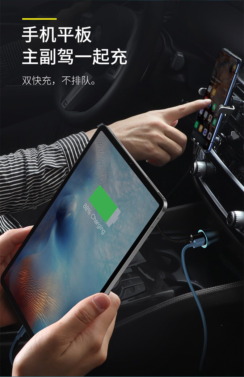 ДомМагазинАвтомобильное зарядное устройствоАвтомобильное зарядное устройство для Apple 17, совместимое с Baseus, адаптер для автомобильного прикуривателя, автомобильное зарядное устройство «один к двум», быстрая зарядка, USB BC.
