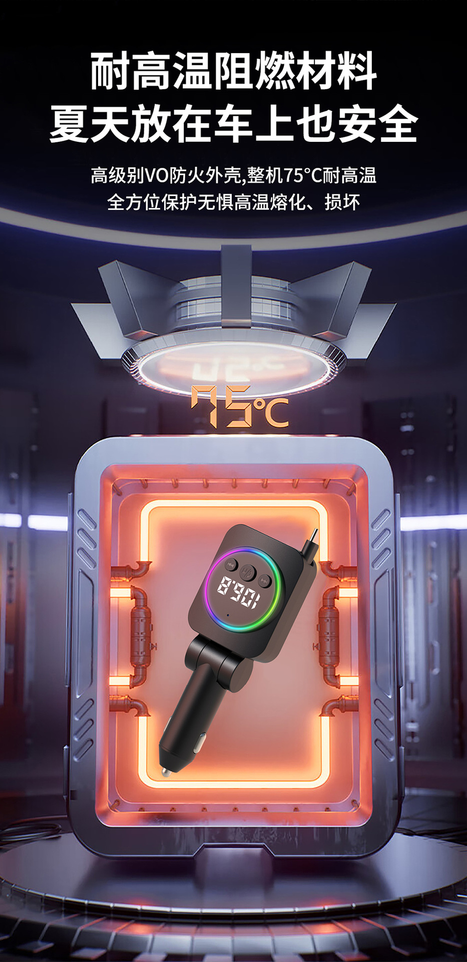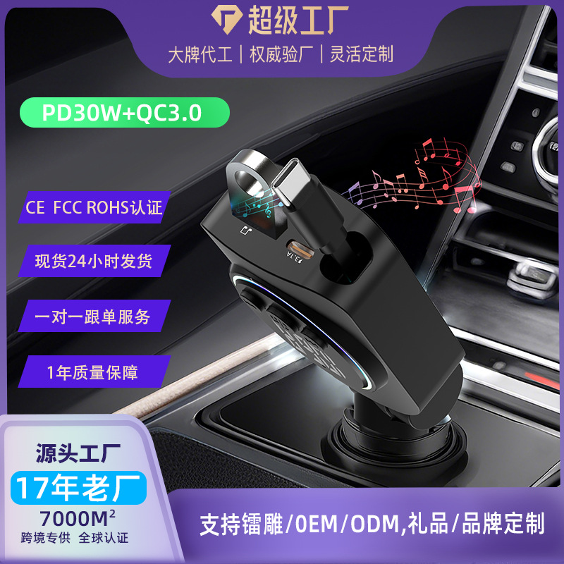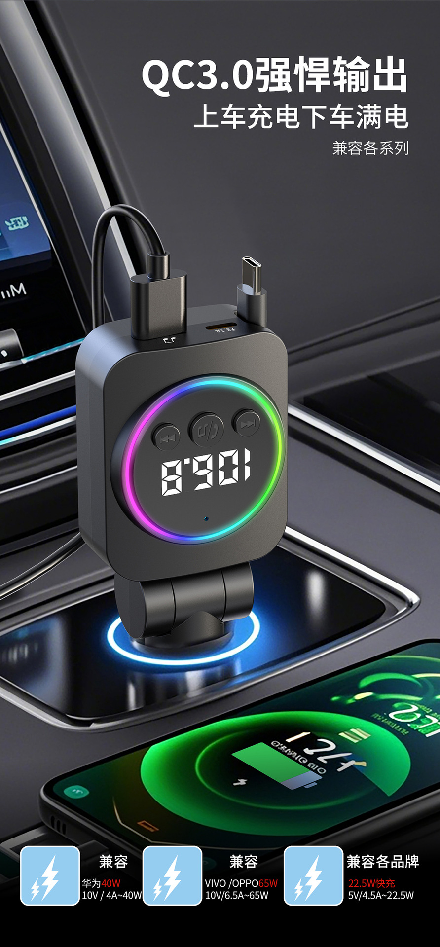 Автомобильное зарядное устройство с выдвижным кабелем, быстрая зарядка, 45 Вт, цифровой дисплей, многофункциональное зарядное устройство «три в одном», прочное автомобильное зарядное устройство с прикуривателем