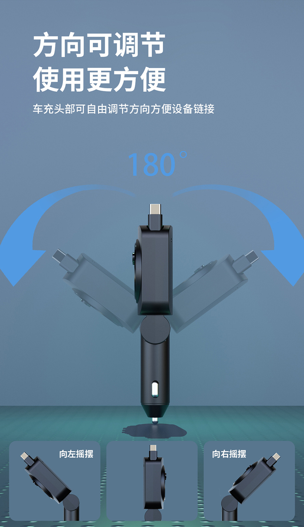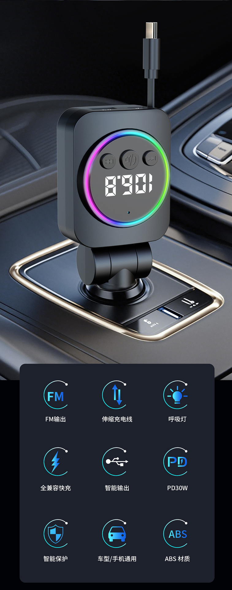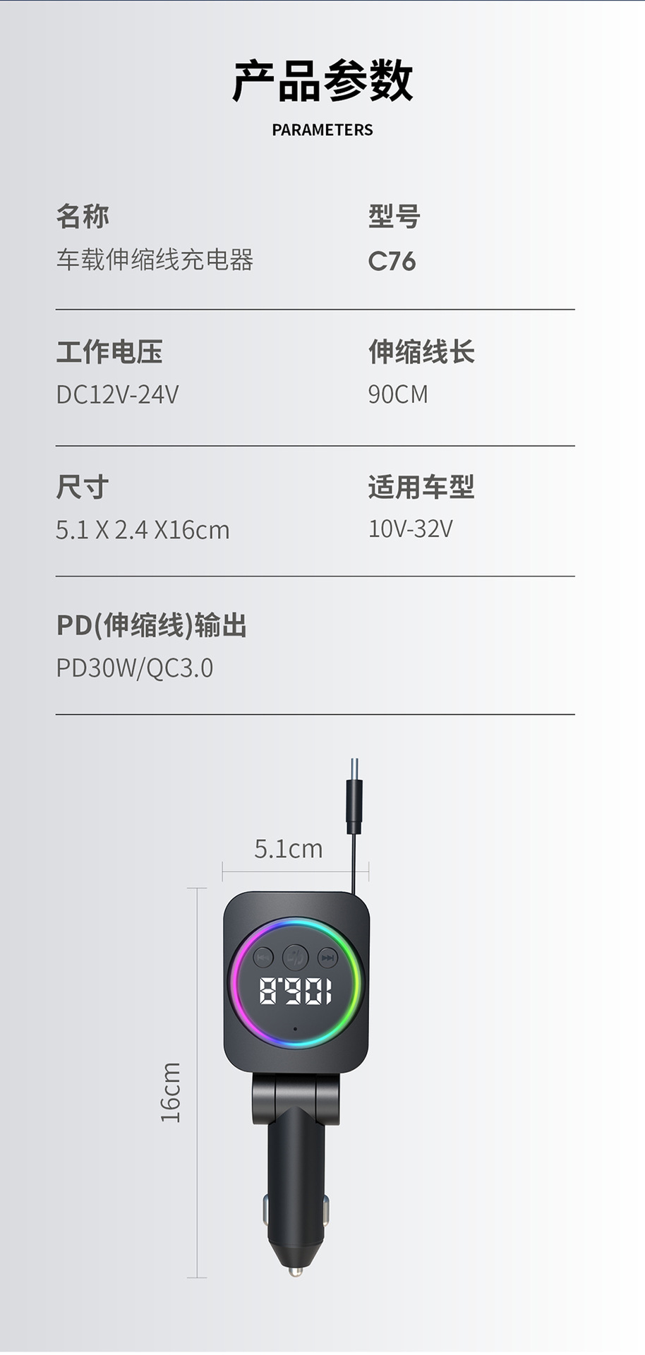 ДомМагазинАвтомобильное зарядное устройствоАвтомобильное зарядное устройство с выдвижным кабелем, быстрая зарядка, 45 Вт, цифровой дисплей, многофункциональное зарядное устройство «три в одном», прочное автомобильное зарядное устройство с прикуривателем