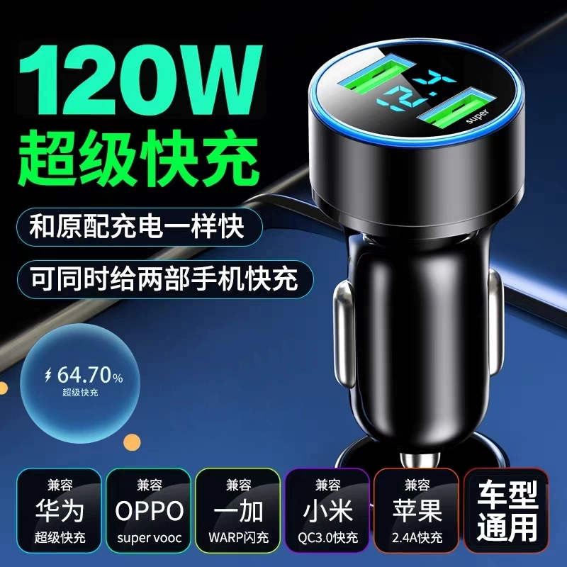 ДомМагазинАвтомобильное зарядное устройствоАвтомобильное зарядное устройство 120 Вт, адаптер для прикуривателя, One-to-Two для мобильных телефонов