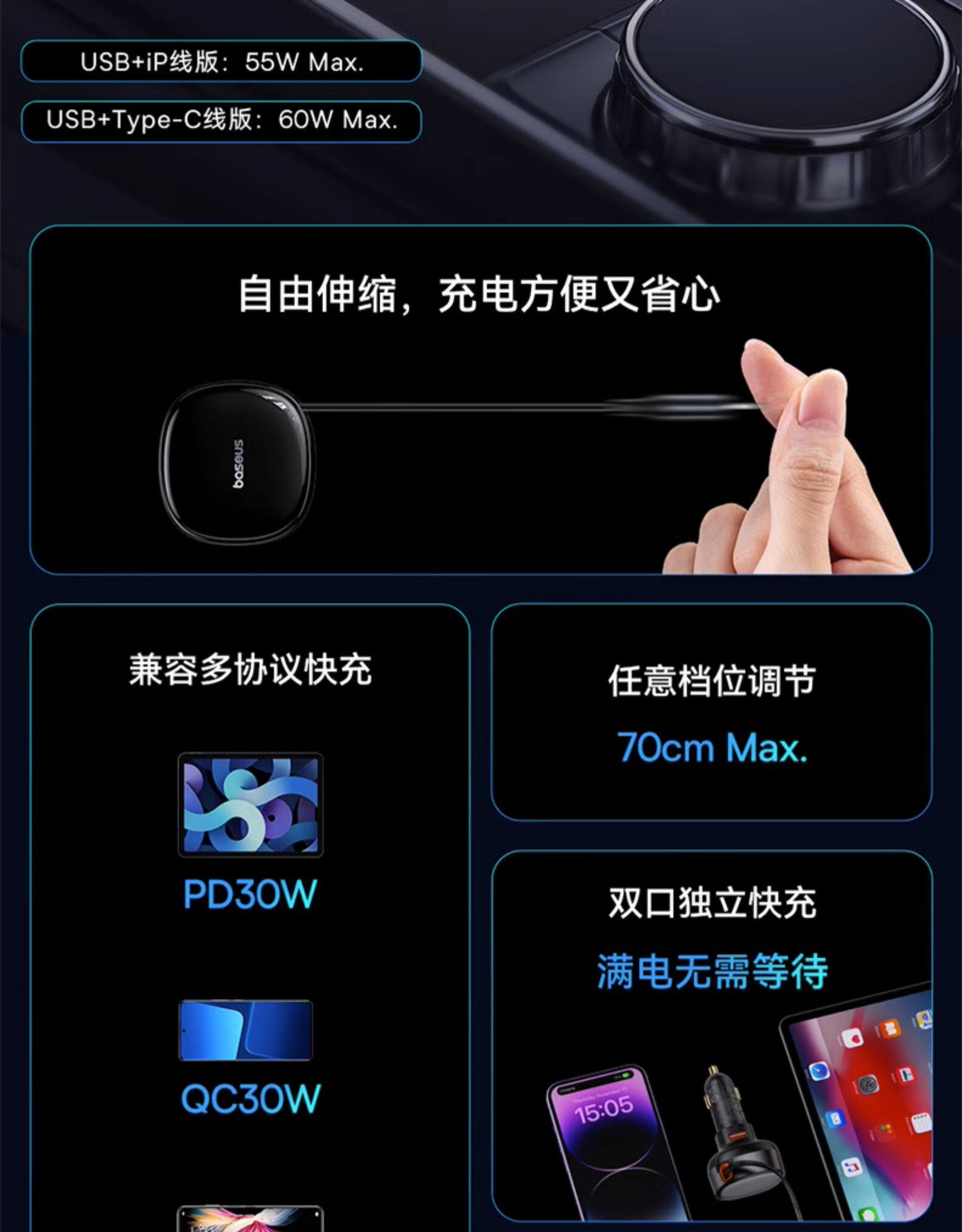 ДомМагазинАвтомобильное зарядное устройствоАвтомобильное зарядное устройство Baseus для Apple iPhone 17, адаптер прикуривателя с кабелем 1-в-2