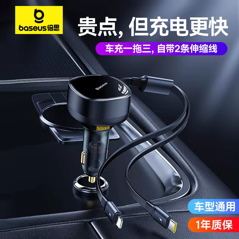 ДомМагазинАвтомобильное зарядное устройствоАвтомобильное зарядное устройство Baseus, сверхбыстрая зарядка, совместимое с Apple и Huawei, адаптер для прикуривателя от одного до трех, кабель для автомобильного зарядного устройства