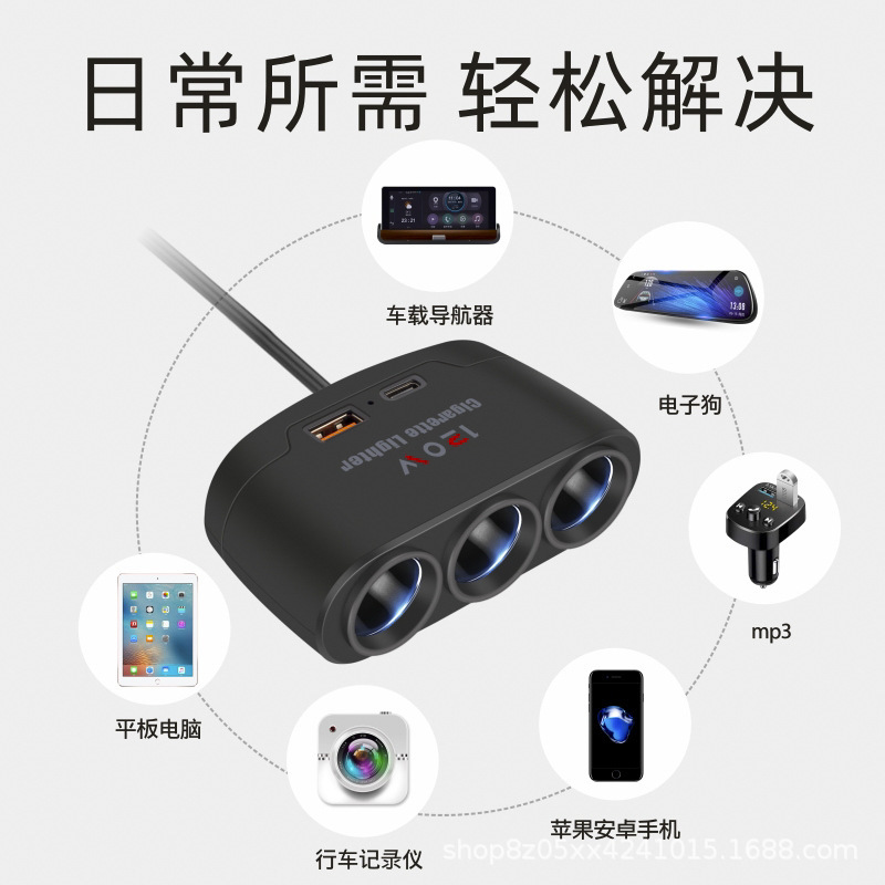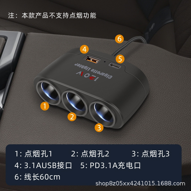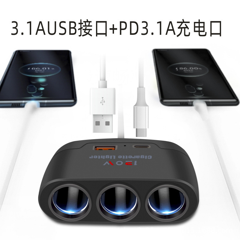 ДомМагазинАвтомобильное зарядное устройствоАвтомобильное многофункциональное зарядное устройство, автомобильное зарядное устройство, прикуриватель, один к трем с интерфейсом быстрой зарядки USB+PD 12 В 24 В
