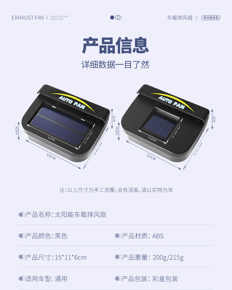 【产品名称】: 太阳能车载排风扇