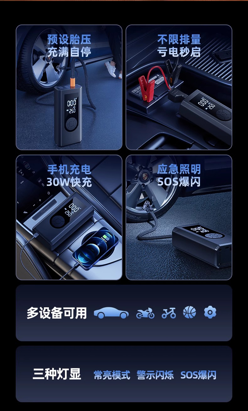 Будьте первым, кто оставил отзыв на “Автомобильный аварийный пусковой кабель, автомобильный воздушный насос 12 В, устройство «все в одном»”