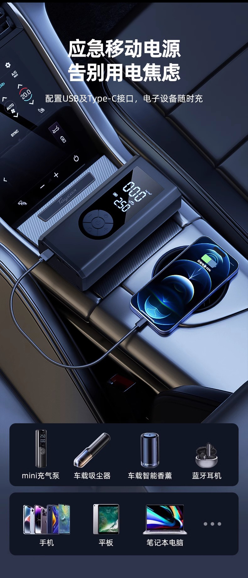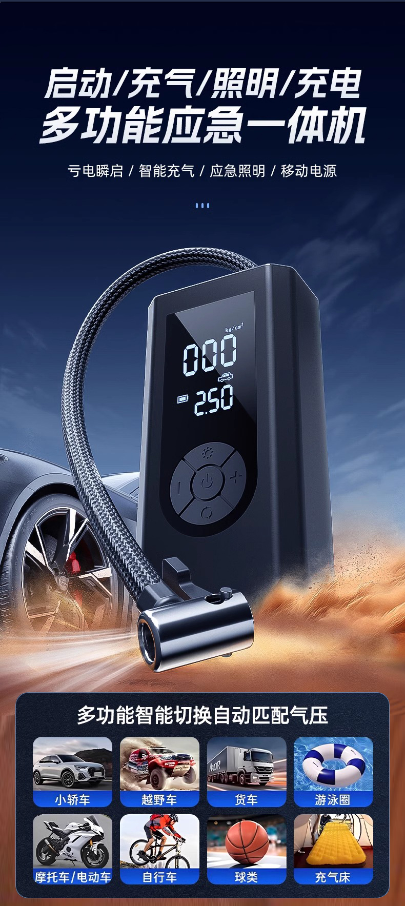 ДомМагазинАварийный источник питания транспортного средстваАвтомобильный аварийный пусковой кабель, автомобильный воздушный насос 12 В, устройство «все в одном»