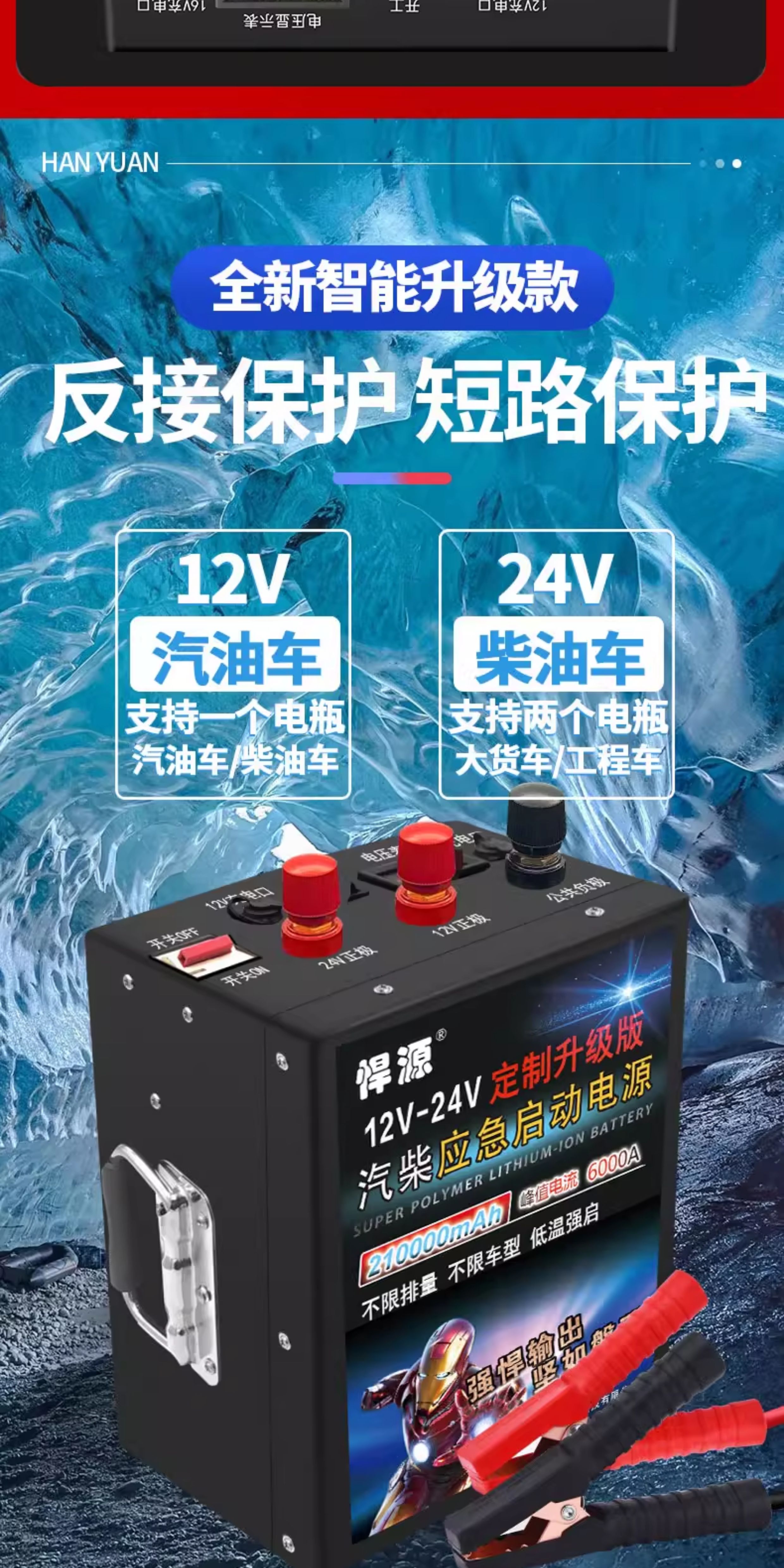 ДомМагазинАвтомобильный аварийный источник питанияАвтомобильный аварийный пусковой пусковой агрегат Hanyuan 12 В/24 В, универсальный, большой емкости, для спасательных работ при низких температурах