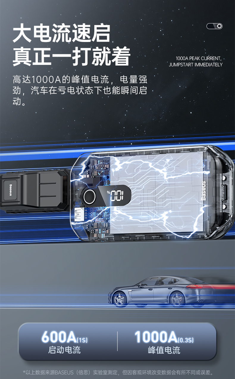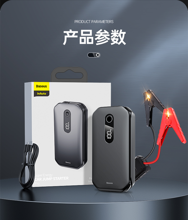 ДомМагазинАварийный источник питания транспортного средстваАвтомобильный аккумулятор Baseus, пусковое устройство 12 В, внешний аккумулятор, пусковое устройство большой емкости