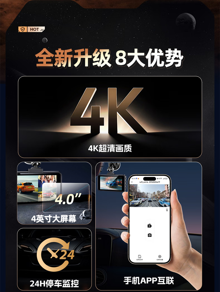 ДомМагазинАвтомобильный видеорегистраторАвтомобильный видеорегистратор новой модели 2025 года, предназначенный для легковых и грузовых автомобилей, 12 В/24 В, не требует подключения, две фронтальные и задние камеры, разрешение 4K Ultra HD