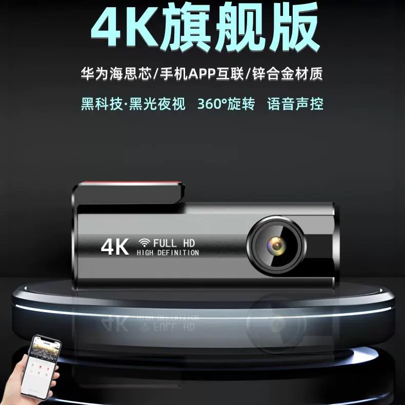ДомМагазинвидеорегистраторАвтомобильный видеорегистратор 4K Ultra HD с вращающейся на 360° камерой, внутренним и внешним USB-интерфейсом Type-C без кабеля, новая модель 2025 года (передняя и задняя камеры)