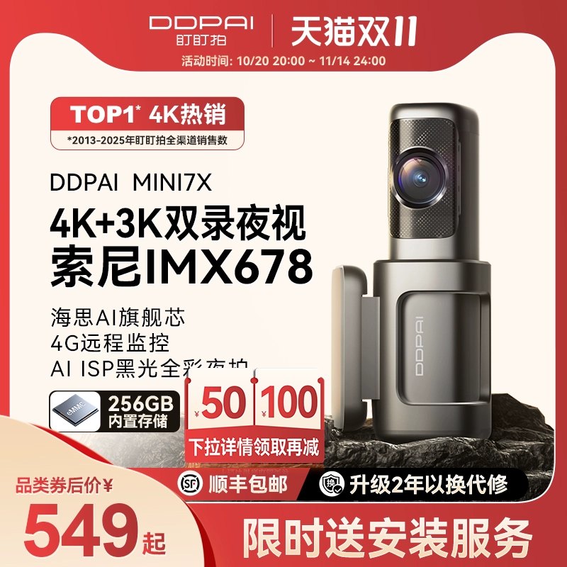 ДомМагазинАвтомобильный видеорегистраторАвтомобильный видеорегистратор DDPAI MINI7X 4K Ultra HD с ночным видением, новая модель 2025 года с дистанционным мониторингом автомобиля и двумя передними и задними камерами