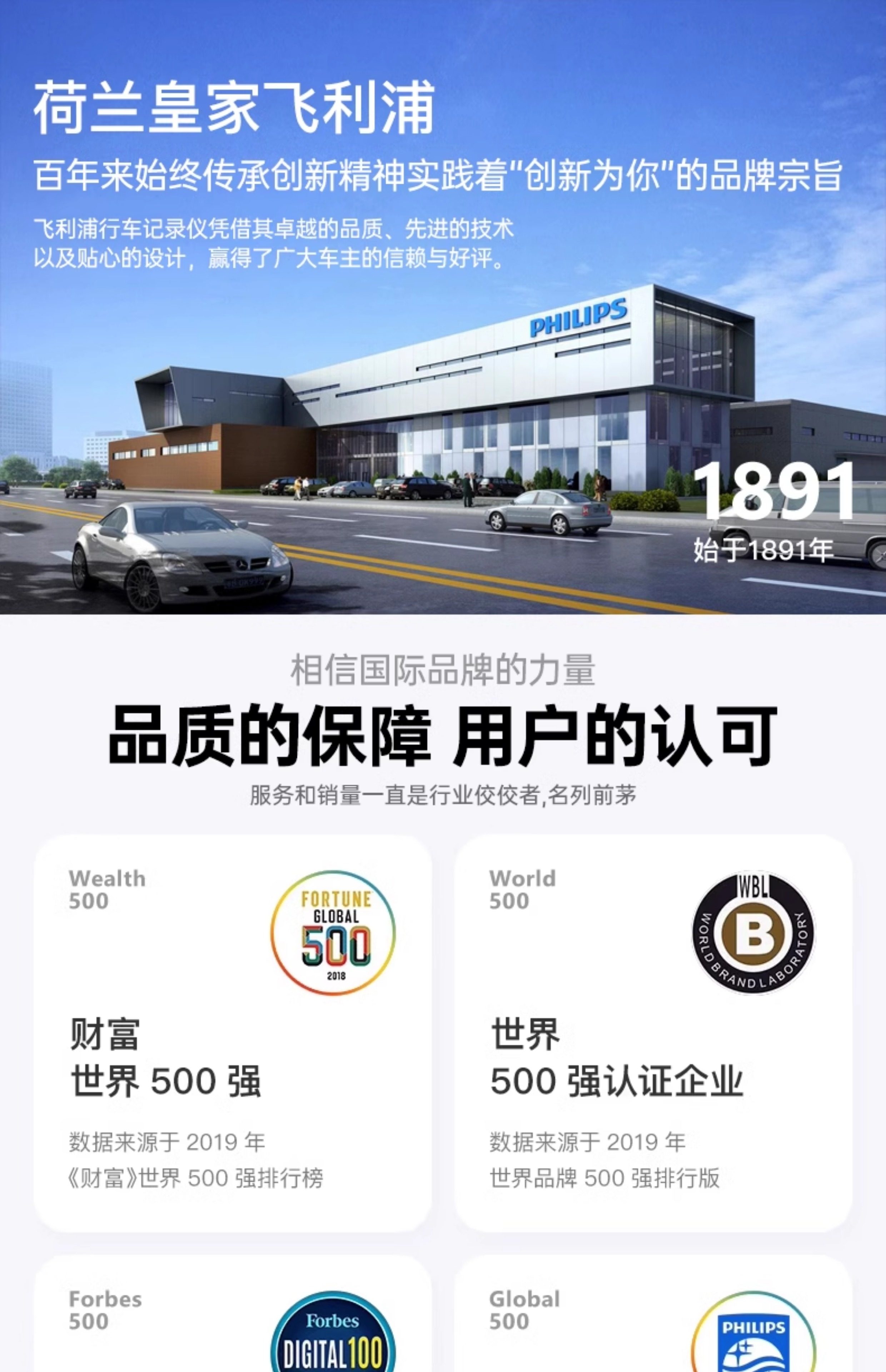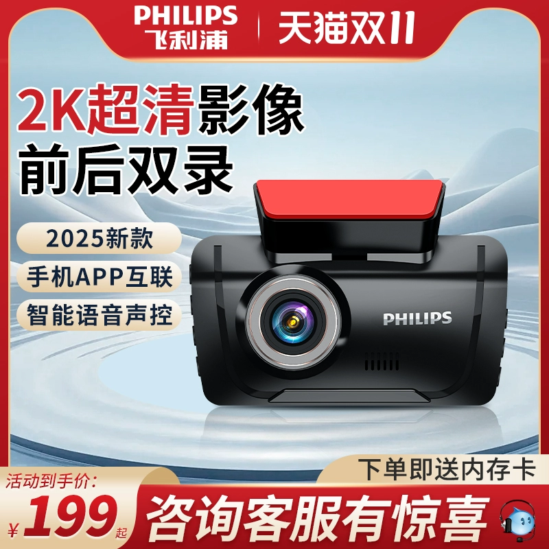 Автомобильный видеорегистратор Philips 2025 года выпуска с панорамным обзором высокой четкости 360° и двумя камерами спереди и сзади — не требует установки и подключения