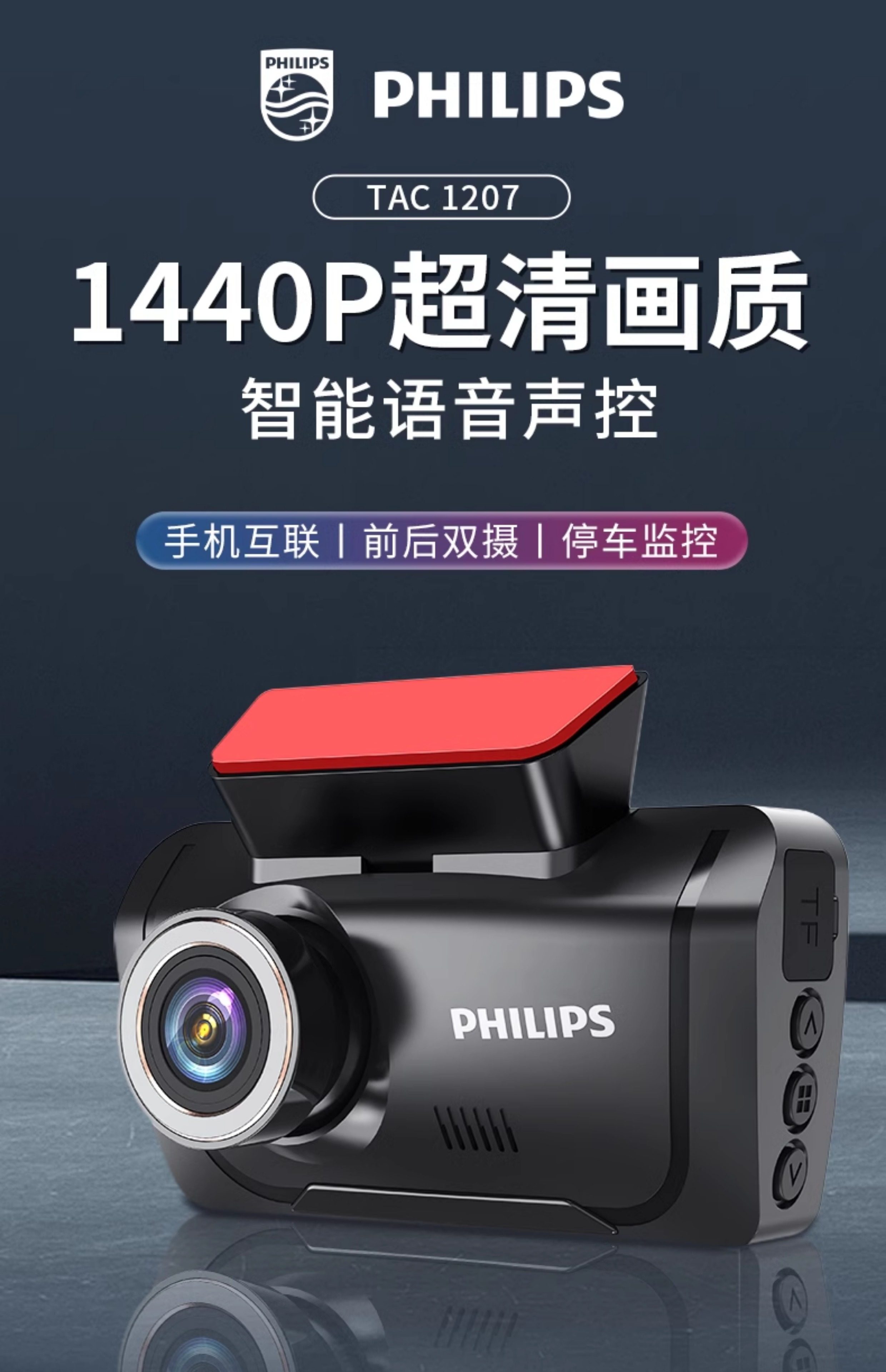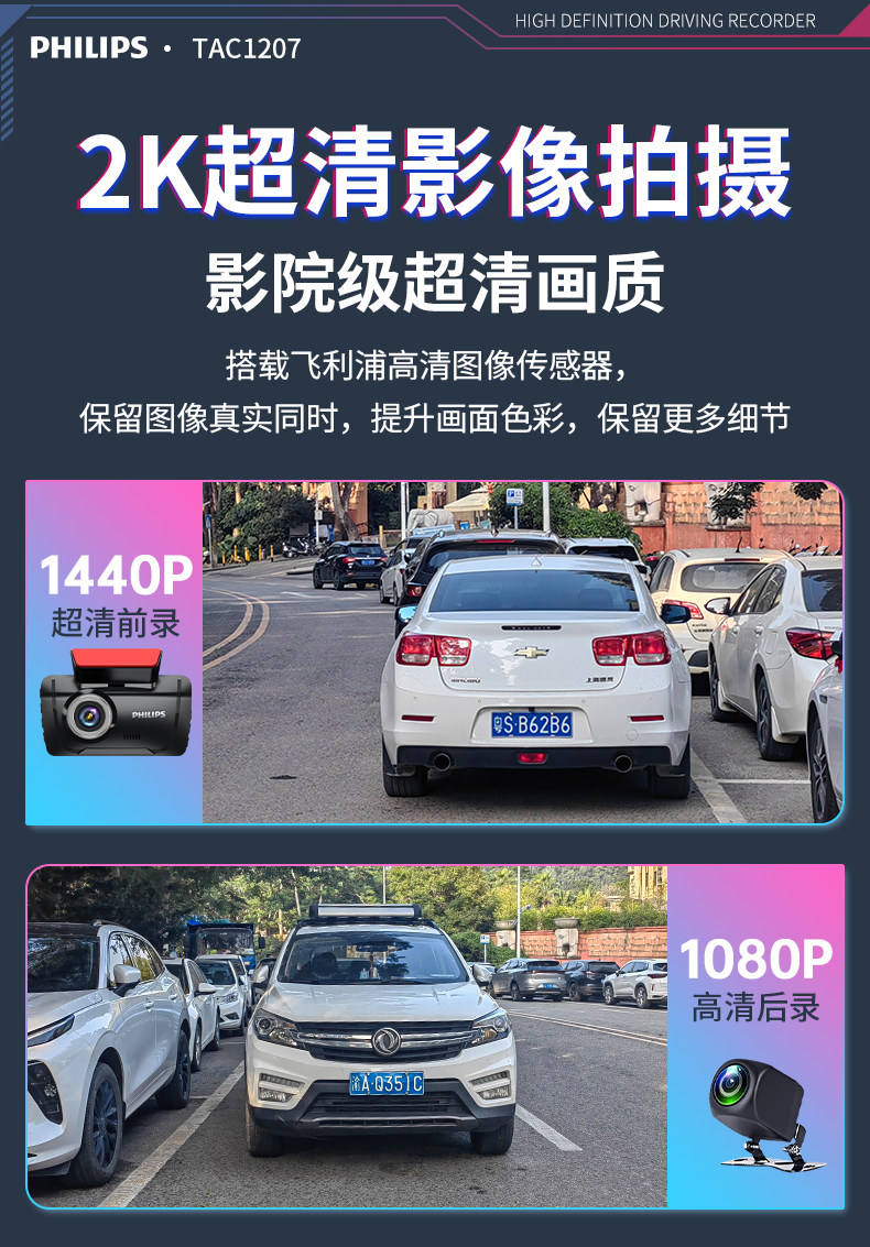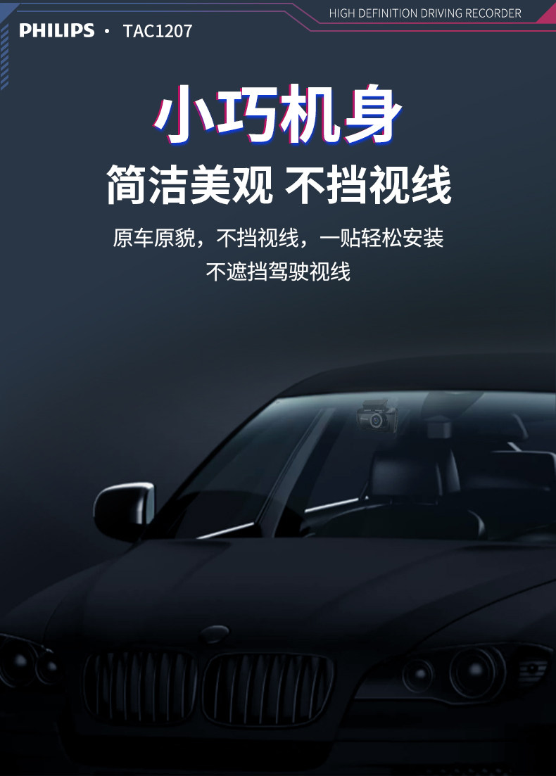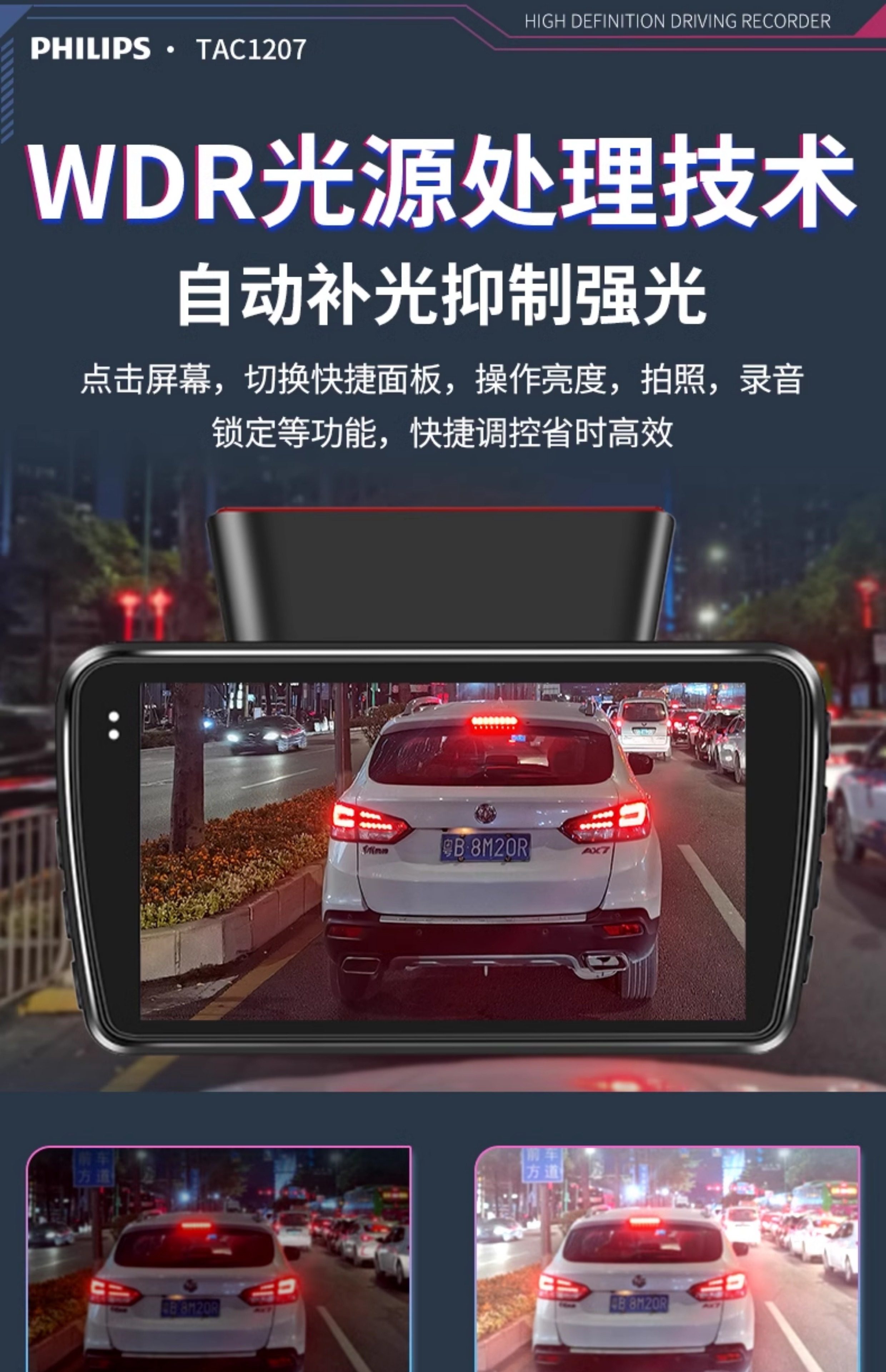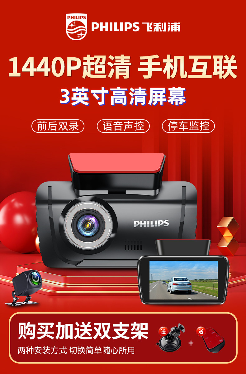 ДомМагазинАвтомобильный видеорегистраторАвтомобильный видеорегистратор Philips 2025 года выпуска с панорамным обзором высокой четкости 360° и двумя камерами спереди и сзади — не требует установки и подключения