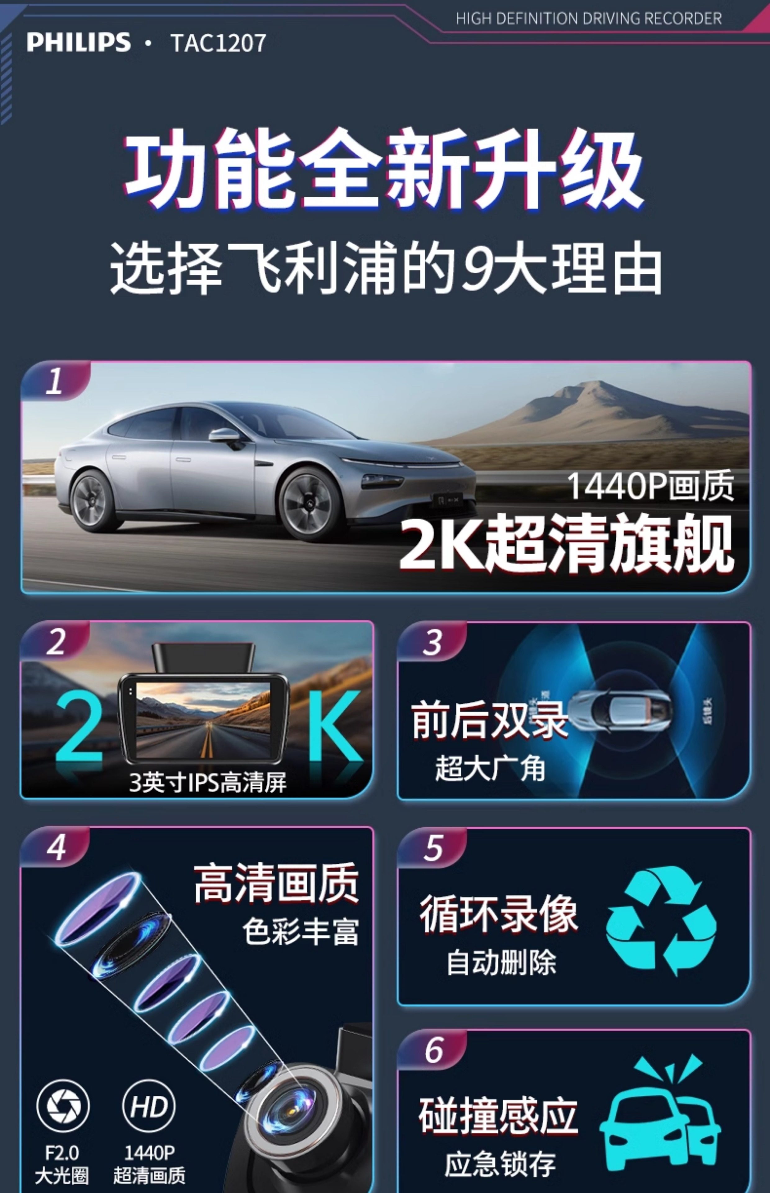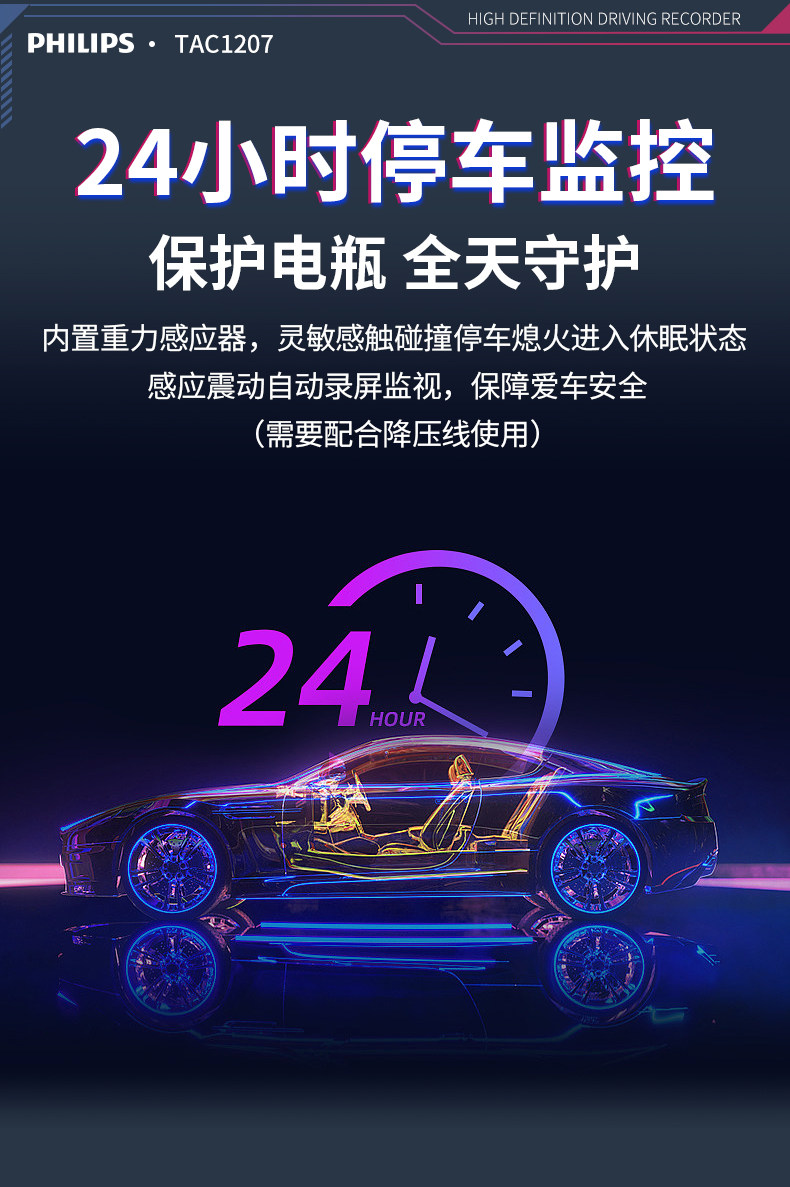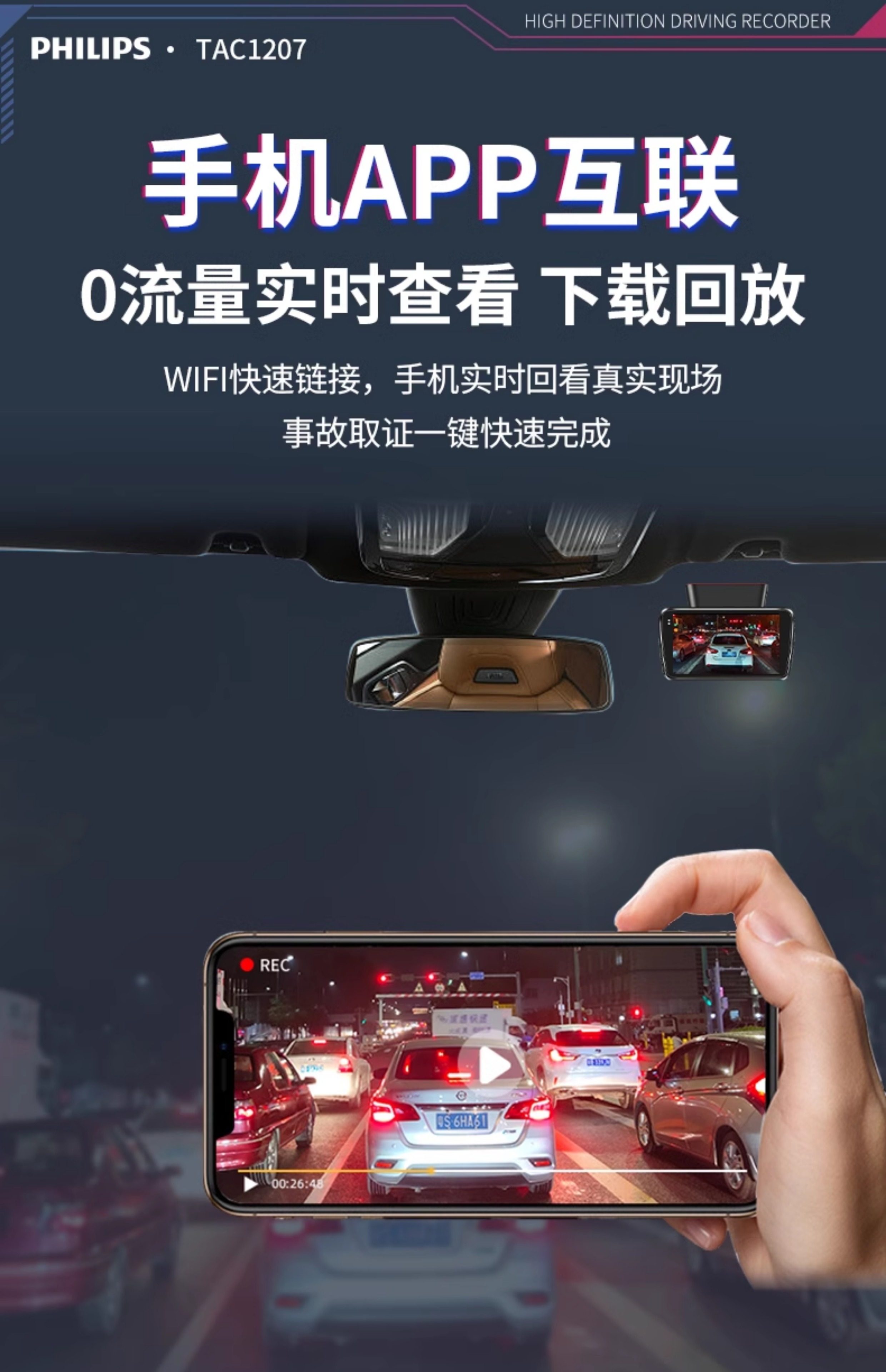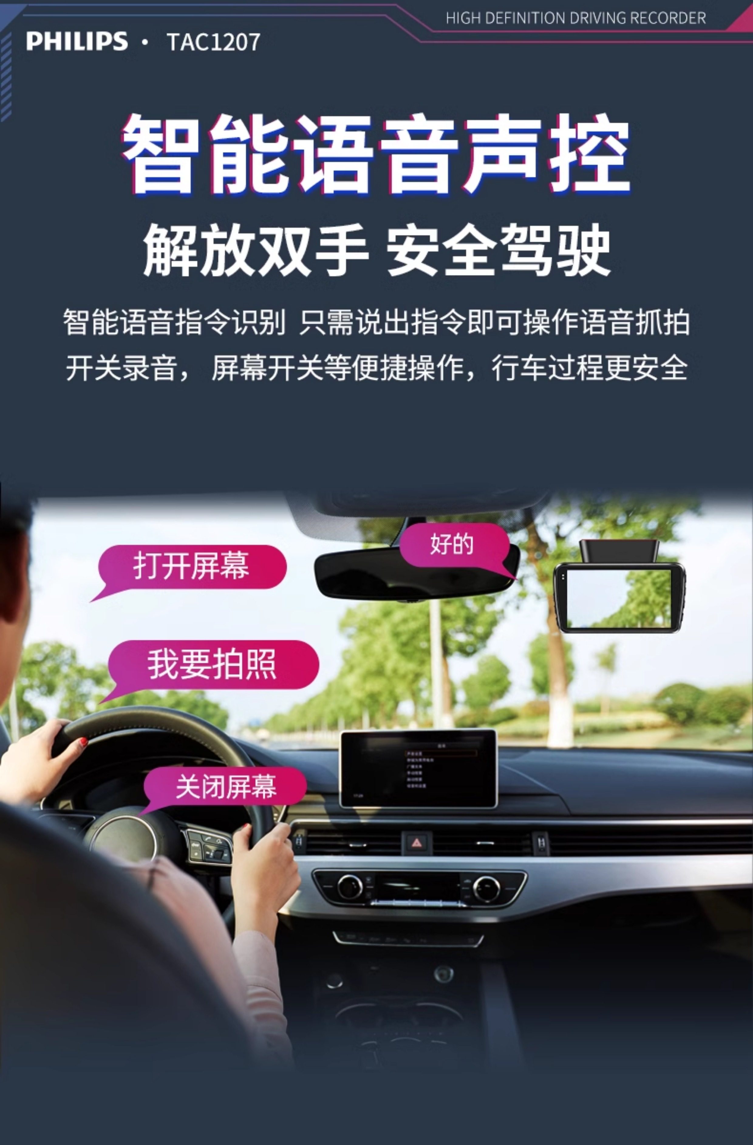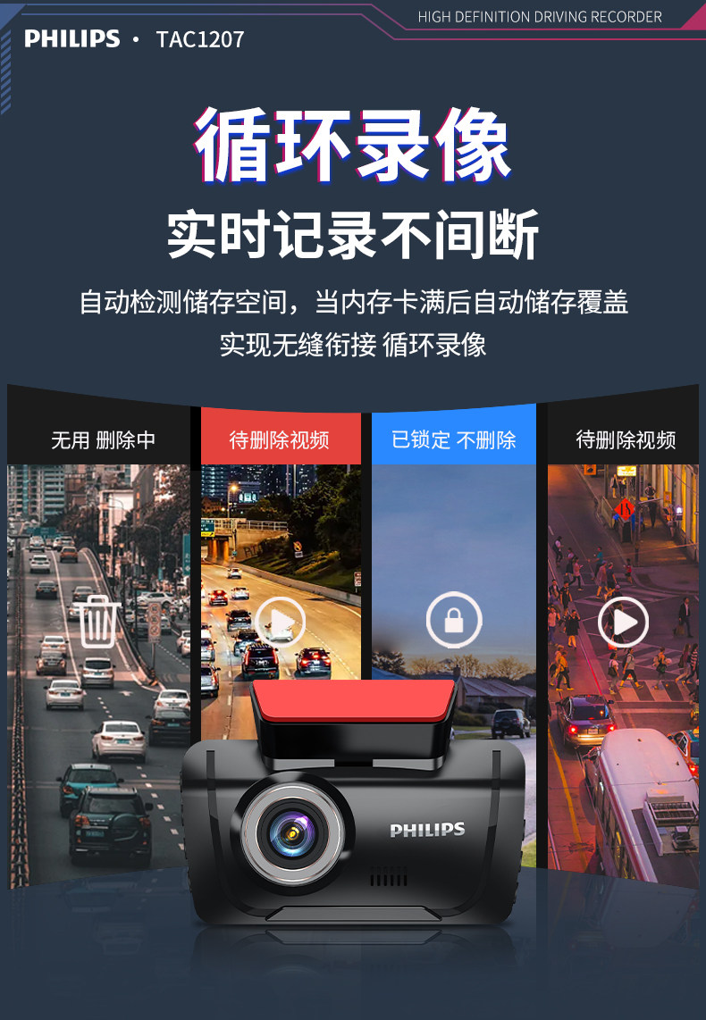 ДомМагазинАвтомобильный видеорегистраторАвтомобильный видеорегистратор Philips 2025 года выпуска с панорамным обзором высокой четкости 360° и двумя камерами спереди и сзади — не требует установки и подключения