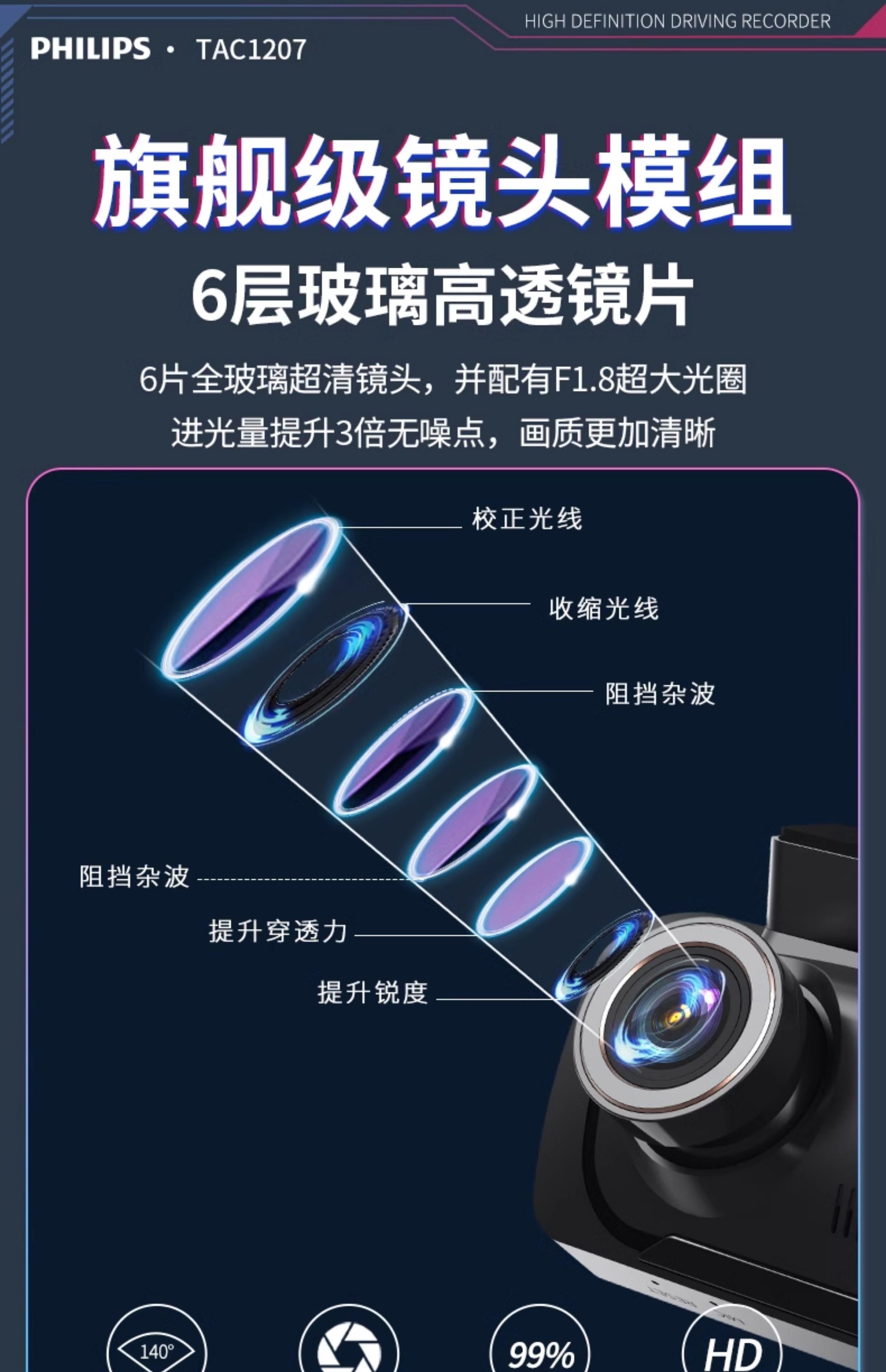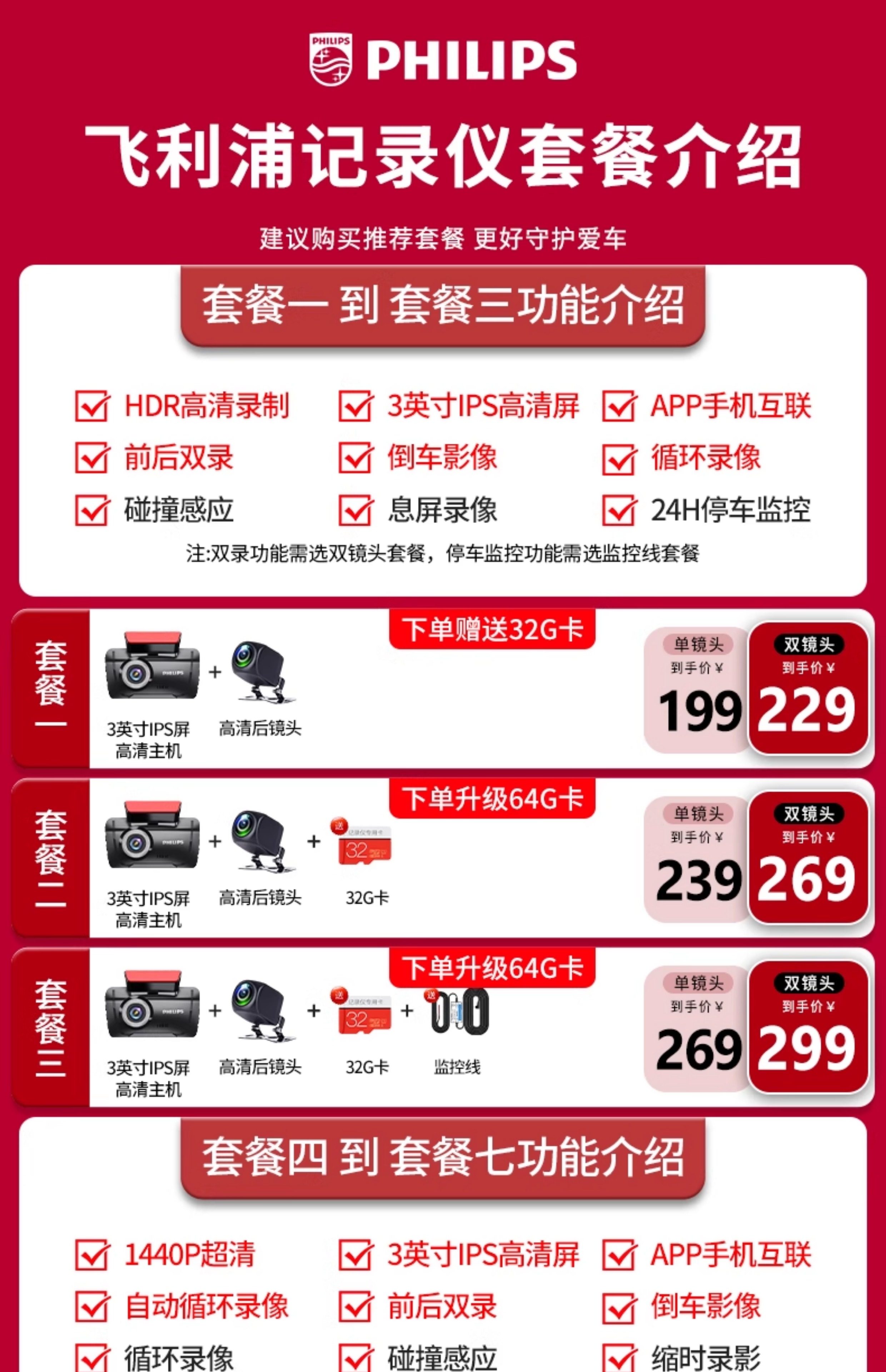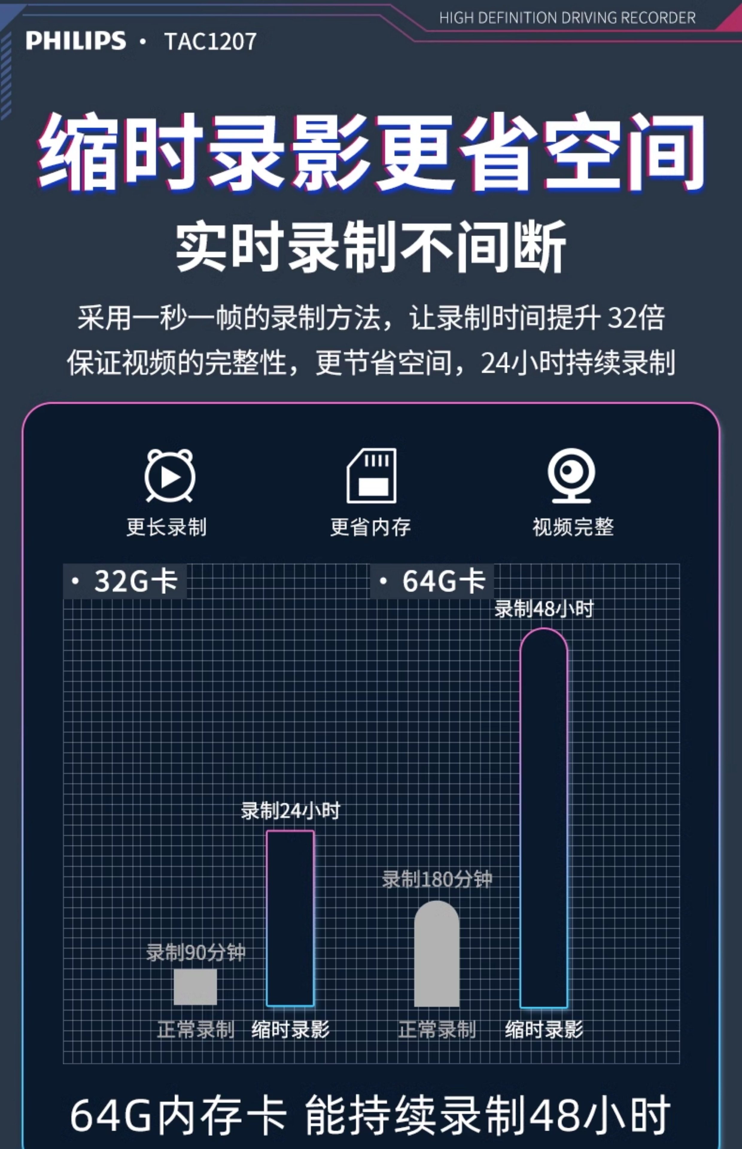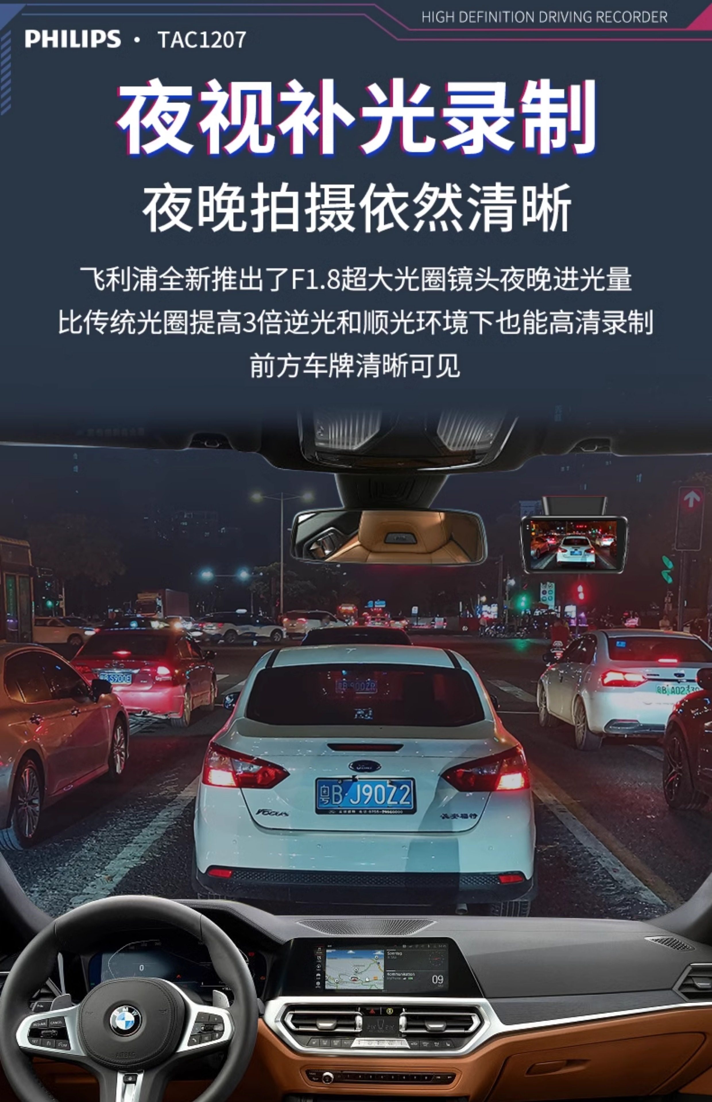 ДомМагазинАвтомобильный видеорегистраторАвтомобильный видеорегистратор Philips 2025 года выпуска с панорамным обзором высокой четкости 360° и двумя камерами спереди и сзади — не требует установки и подключения