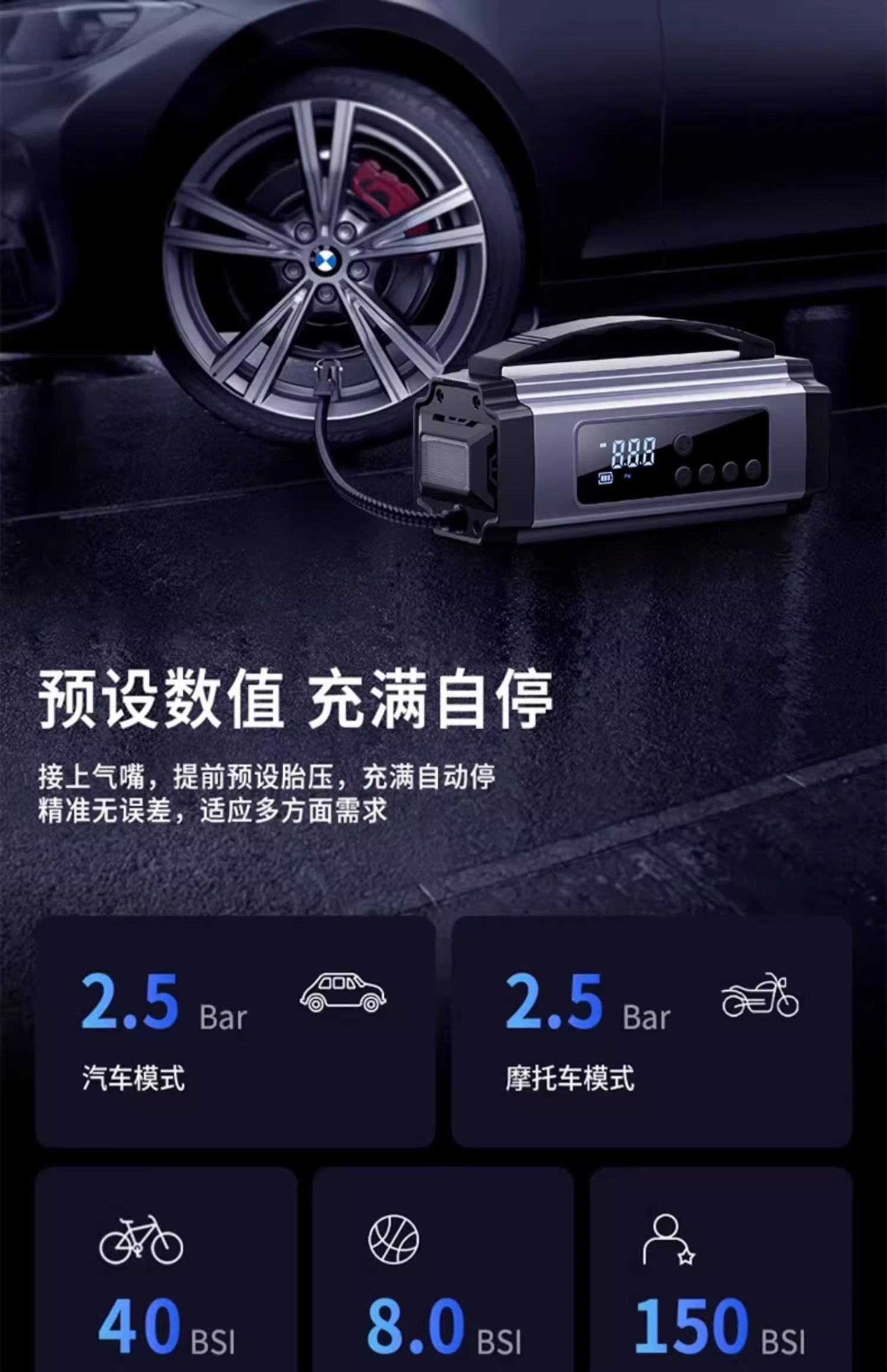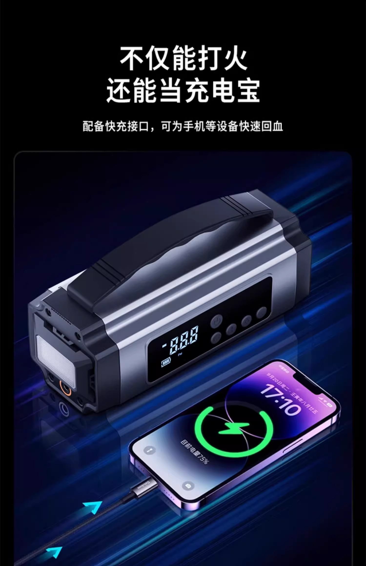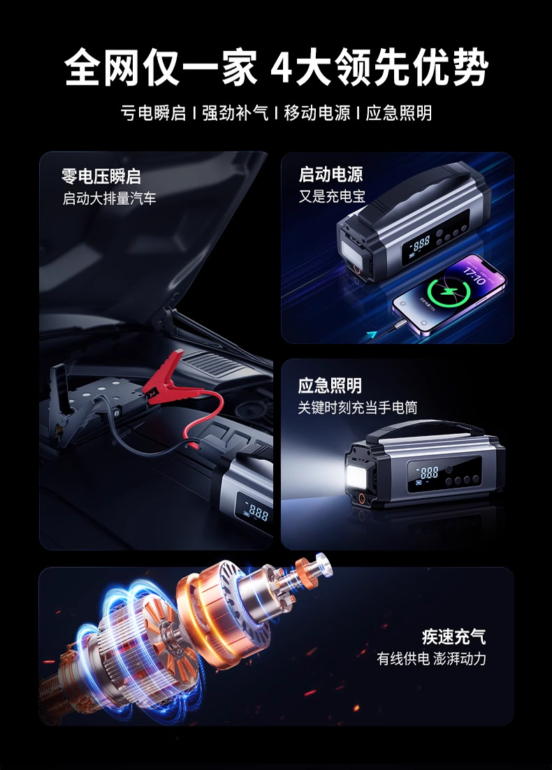 ДомМагазинАварийный источник питания транспортного средстваАвтомобильный воздушный насос, электрический тестер давления в шинах, совместимый с аварийным пусковым устройством Xiaomi, все в одном устройстве