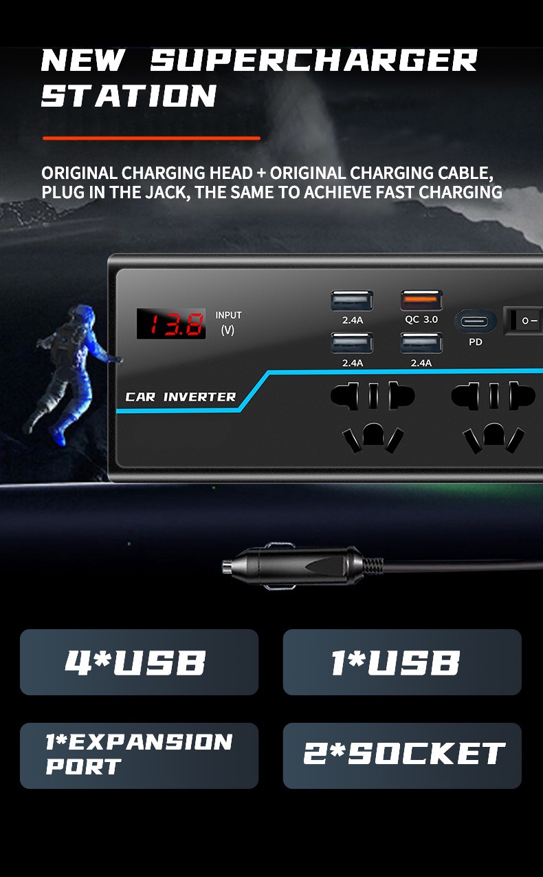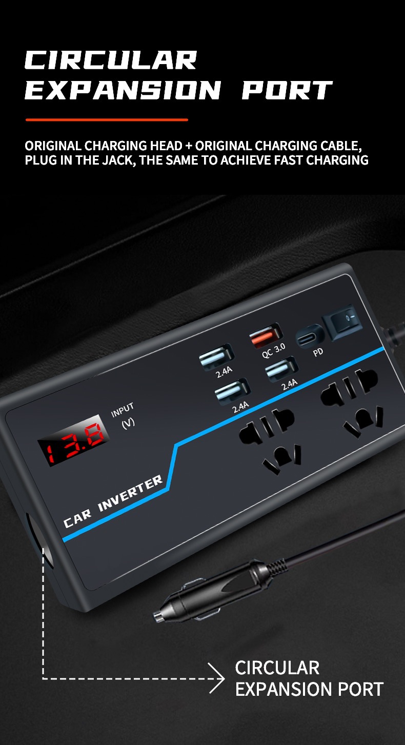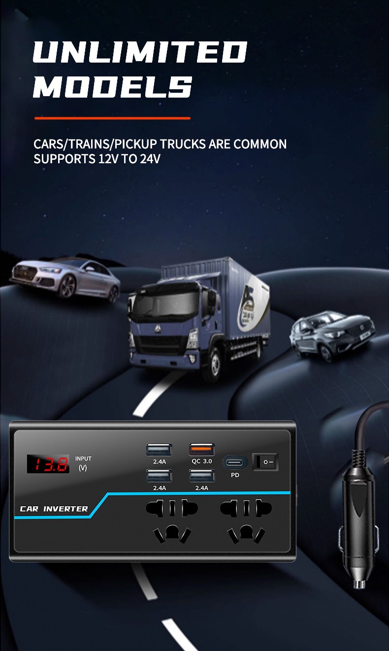 ДомМагазинАвтомобильное зарядное устройствоАвтомобильный инвертор-преобразователь 12 В/24 В в 110 В/220 В, быстрое зарядное устройство для прикуривателя