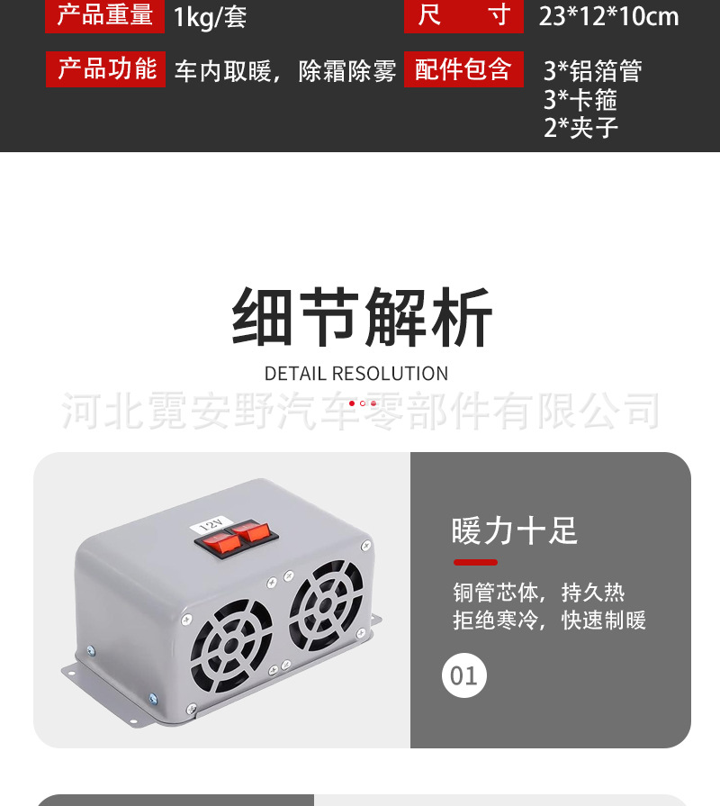 用途 : 车内玻璃除霜 除雾 局部加热取暖