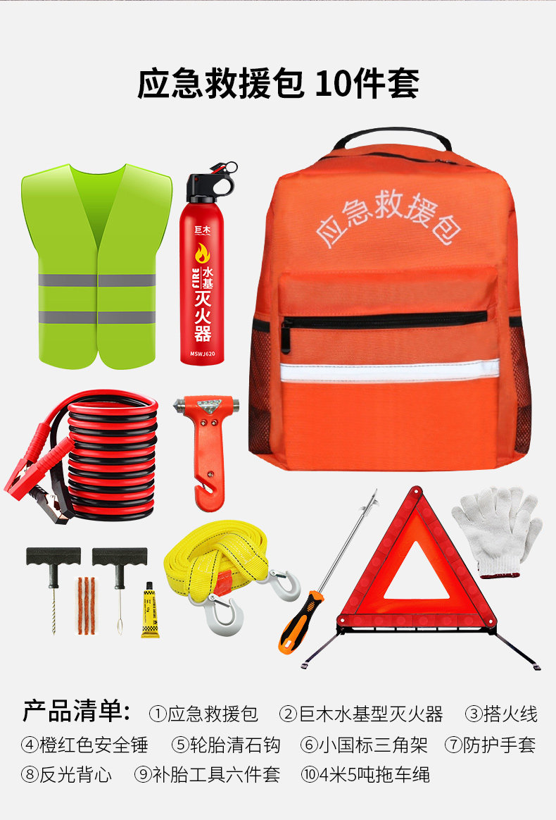 Автомобильный огнетушитель, набор из десяти предметов для личного автомобиля, аварийно-спасательный комплект для ежегодного техосмотра, инструменты безопасности транспортного средства