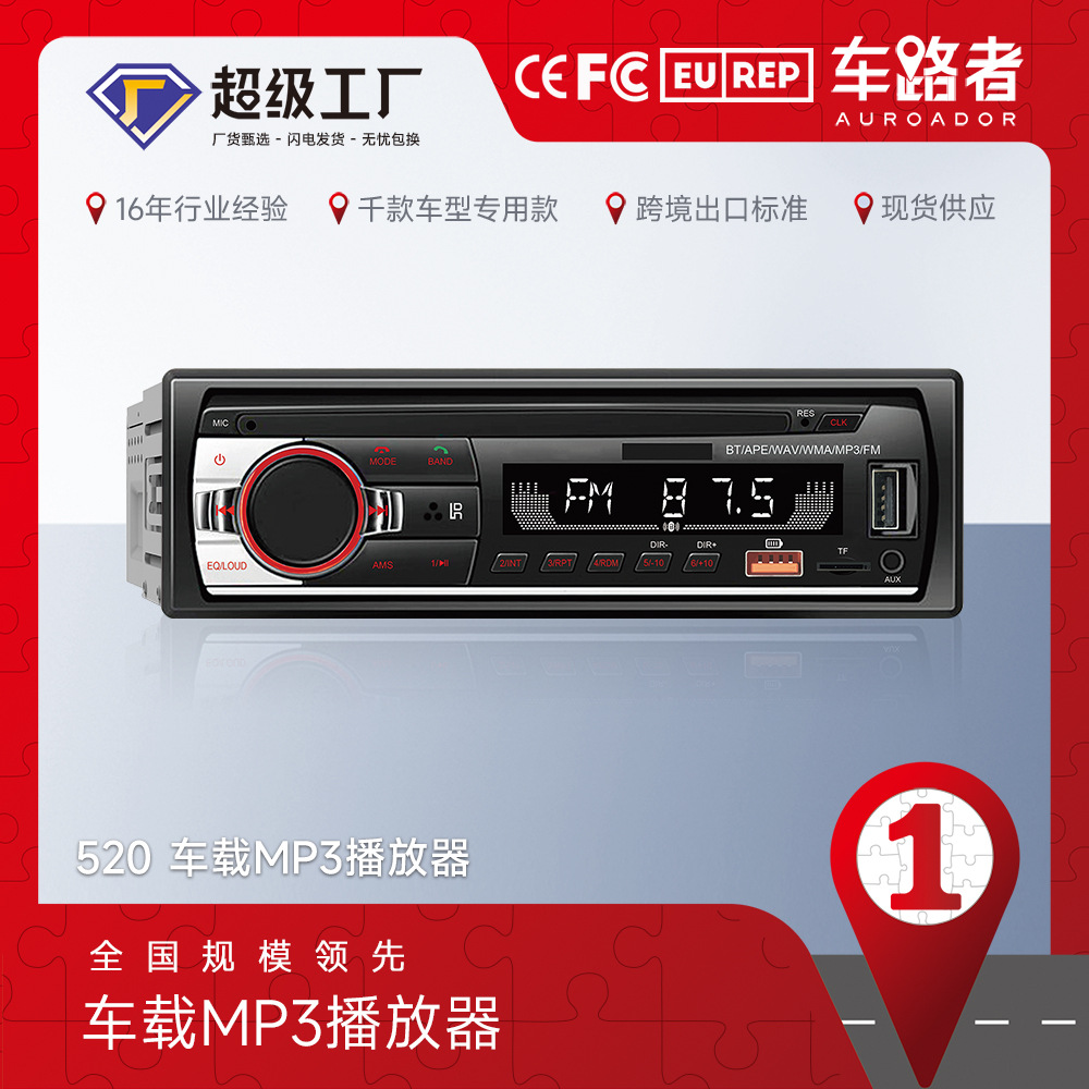 ДомМагазинАвтомобильные динамикиАвтомобильный плеер Crossborder 520 с USB-картой, радио, Bluetooth, громкая связь, MP3-плеер с короткими записями, музыка без потерь