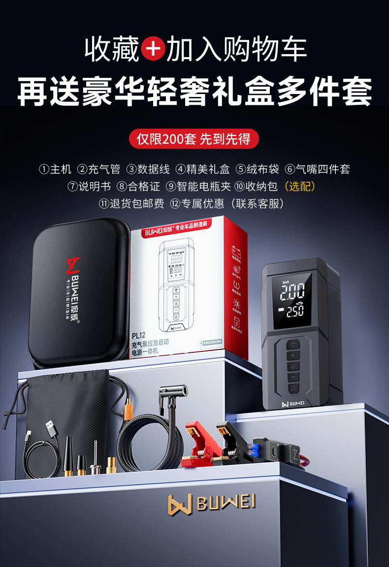 ДомМагазинАварийный источник питания транспортного средстваАвтомобильный пусковой агрегат BUWEI, автомобильный воздушный насос, пусковое устройство, аварийный пожарный стартер
