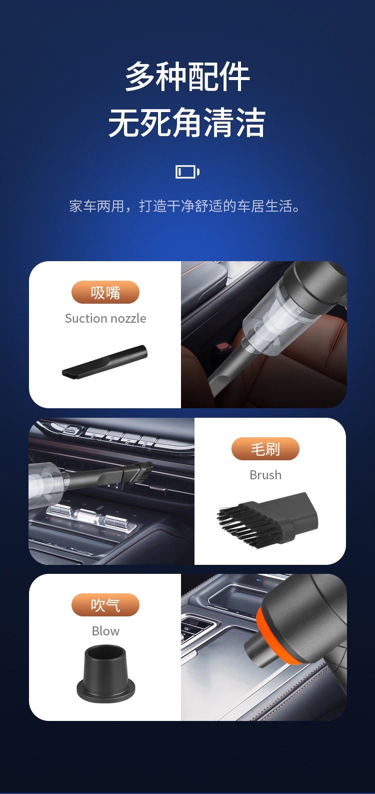 ДомМагазинАвтомобильный пылесосАвтомобильный пылесос 2-в-1 с высокой мощностью всасывания для автомобилей и задних сидений