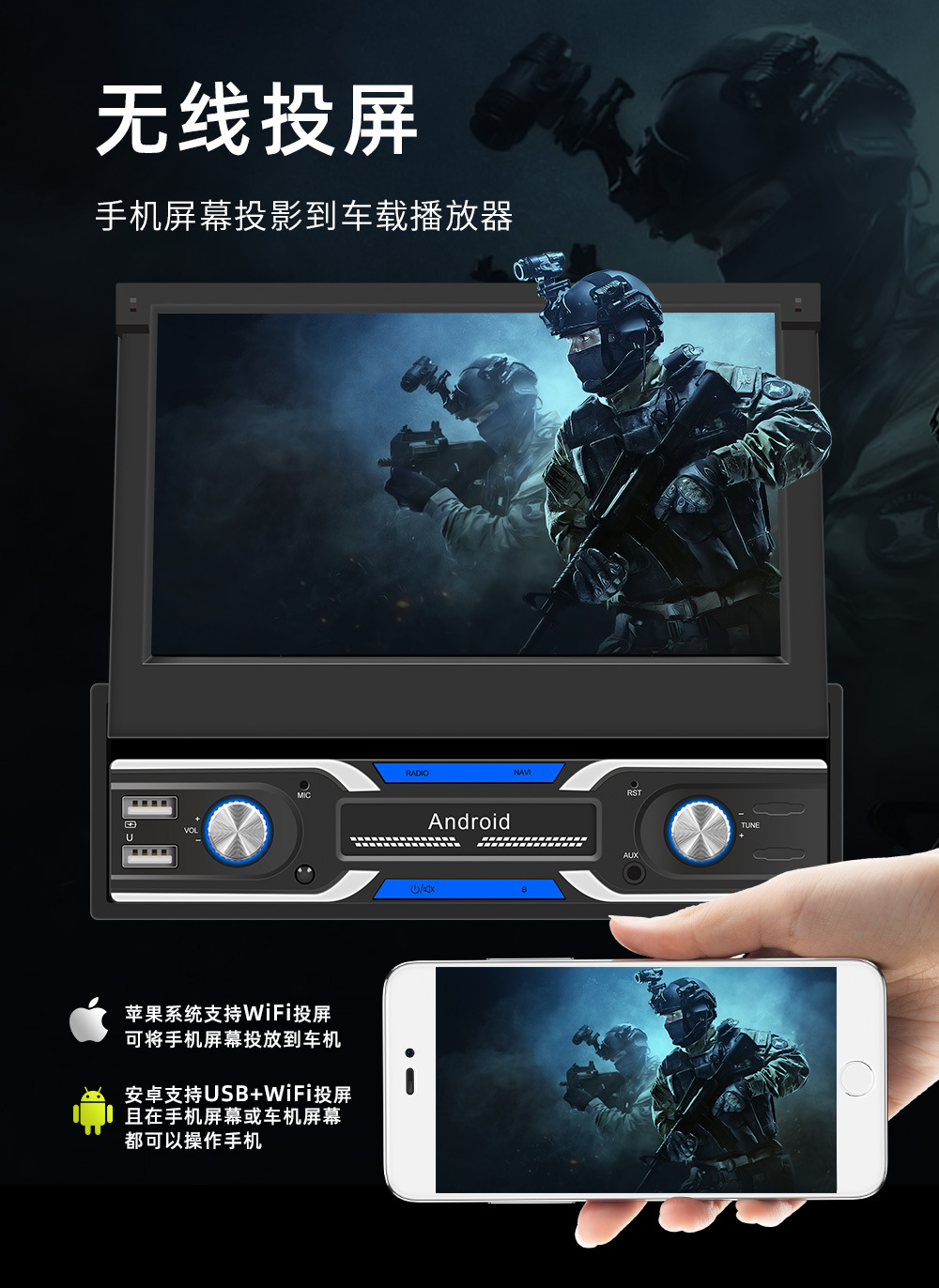 类型:安卓导航机-手动伸缩屏 (可选配电动伸缩)