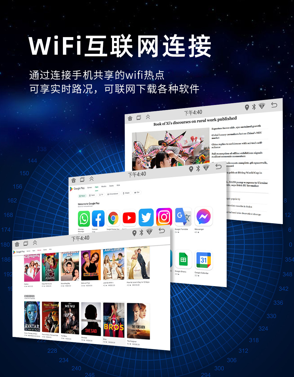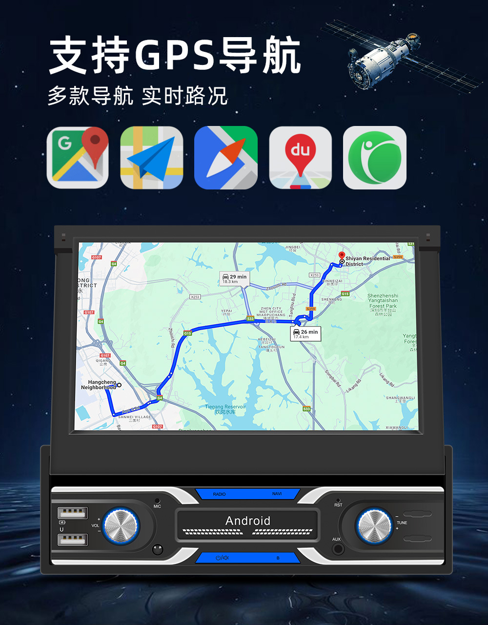 ♦GPS导航功能(可安装多种导航软件,实时路况导航,提前预知道路拥堵情况,合理规划出行路线),精准定位更稳定,受环境影像小;