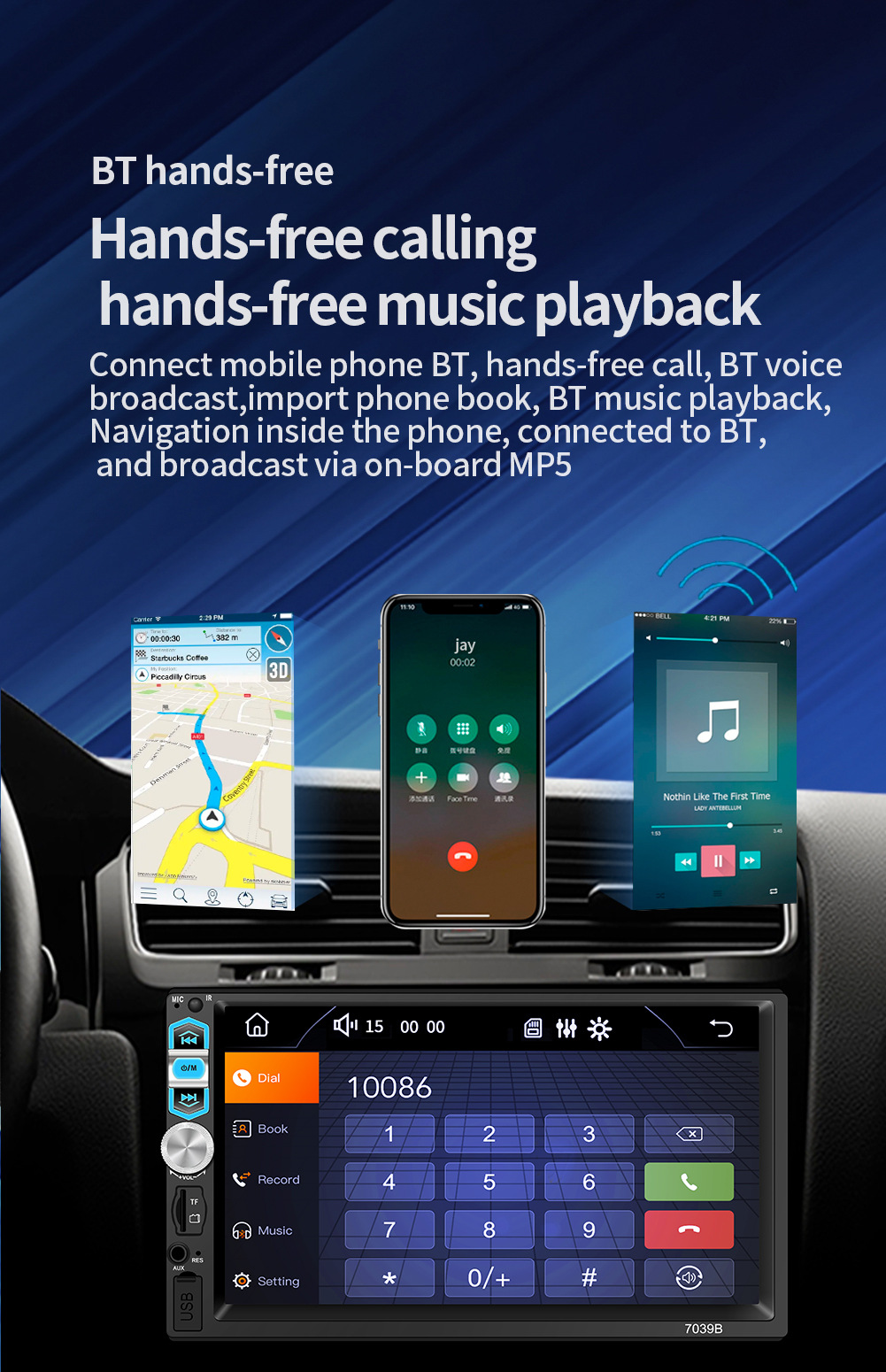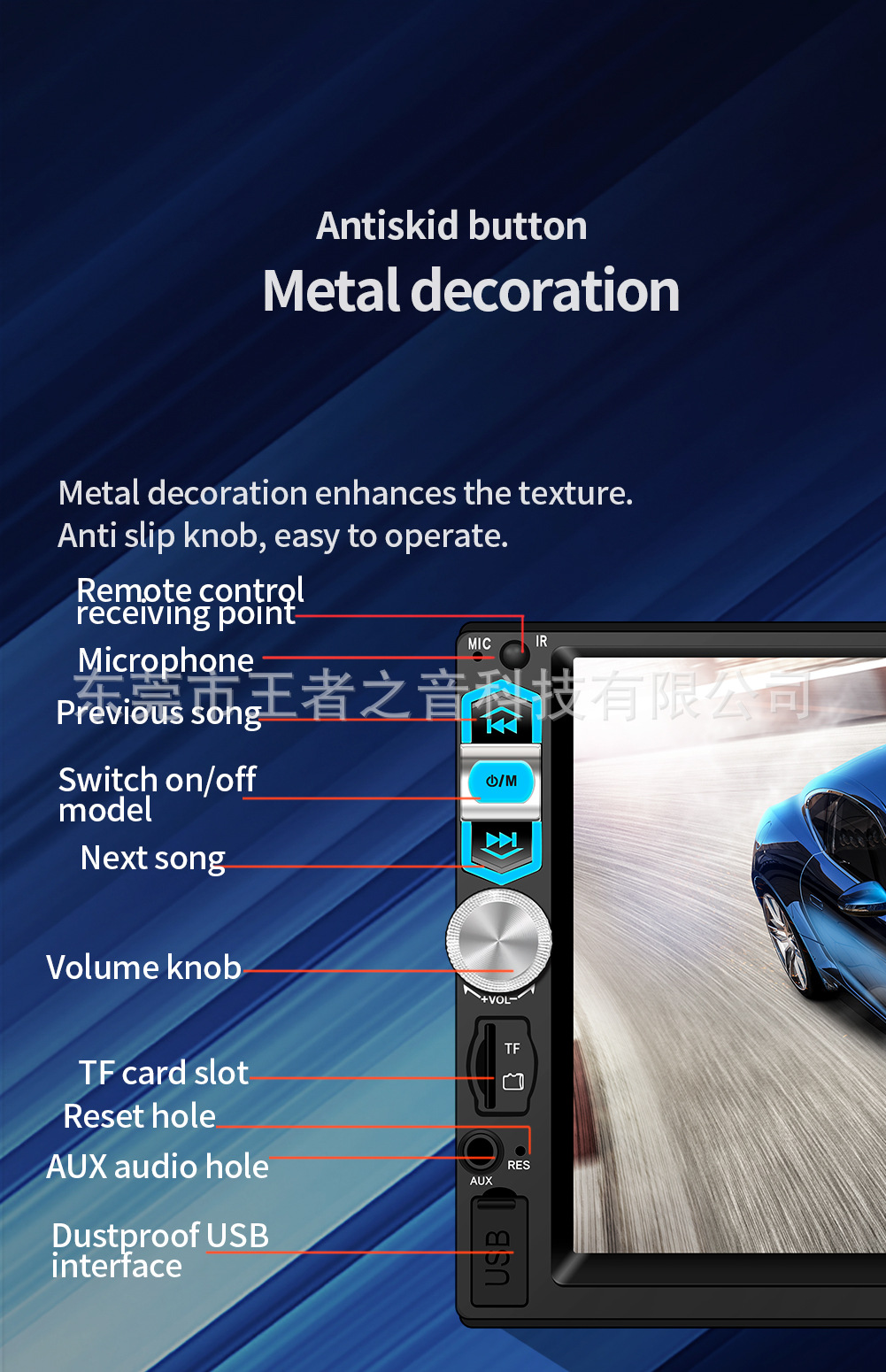 7寸单锭车载MP5播放器