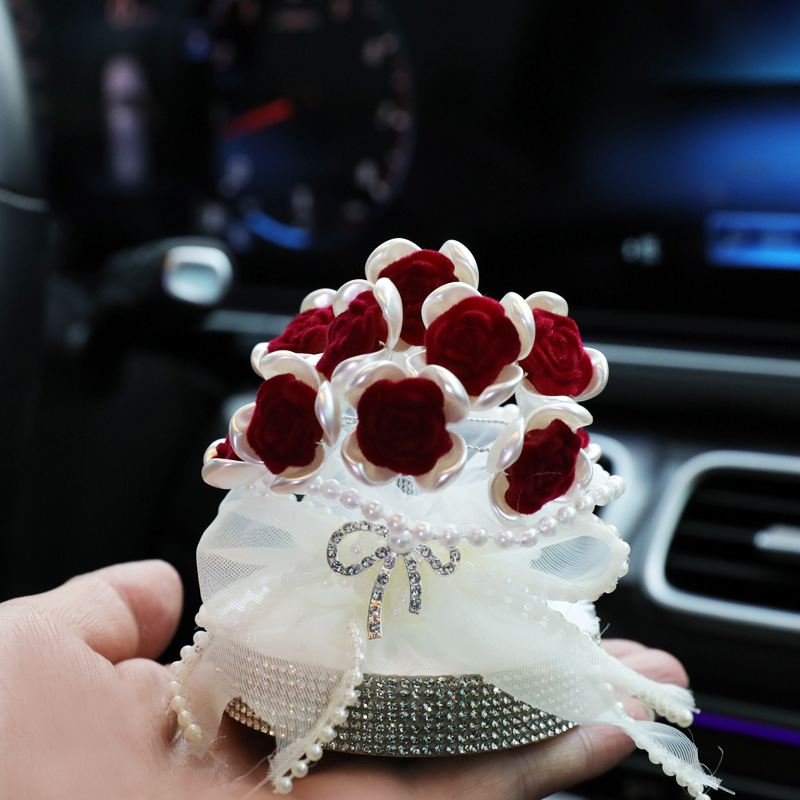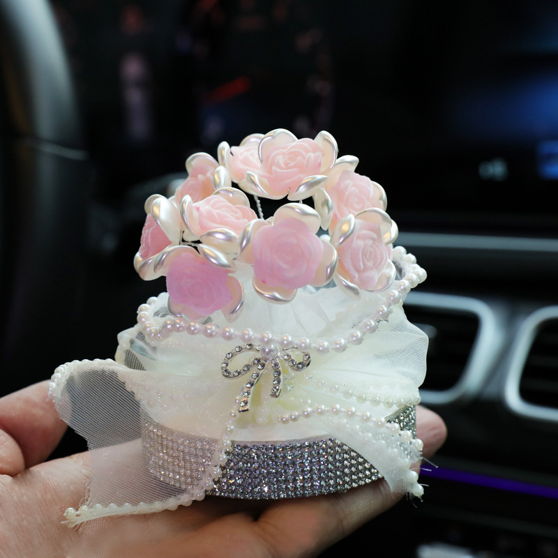 ДомМагазинАвтомаятникАроматические украшения для автомобиля с розами, парфюмерные украшения для автомобиля, модные искусственные цветы, украшенные бриллиантами