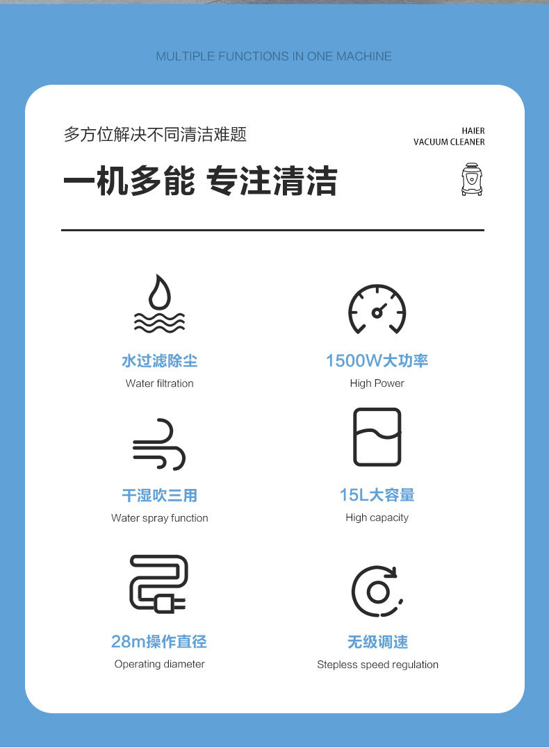 ДомМагазинАвтомобильный пылесос[Бесплатная доставка через SF Express] Туалетный пылесос Haier с водяным фильтром, высокая мощность всасывания для домашнего использования, влажная и сухая уборка, туалетный пылесос для автомобилей