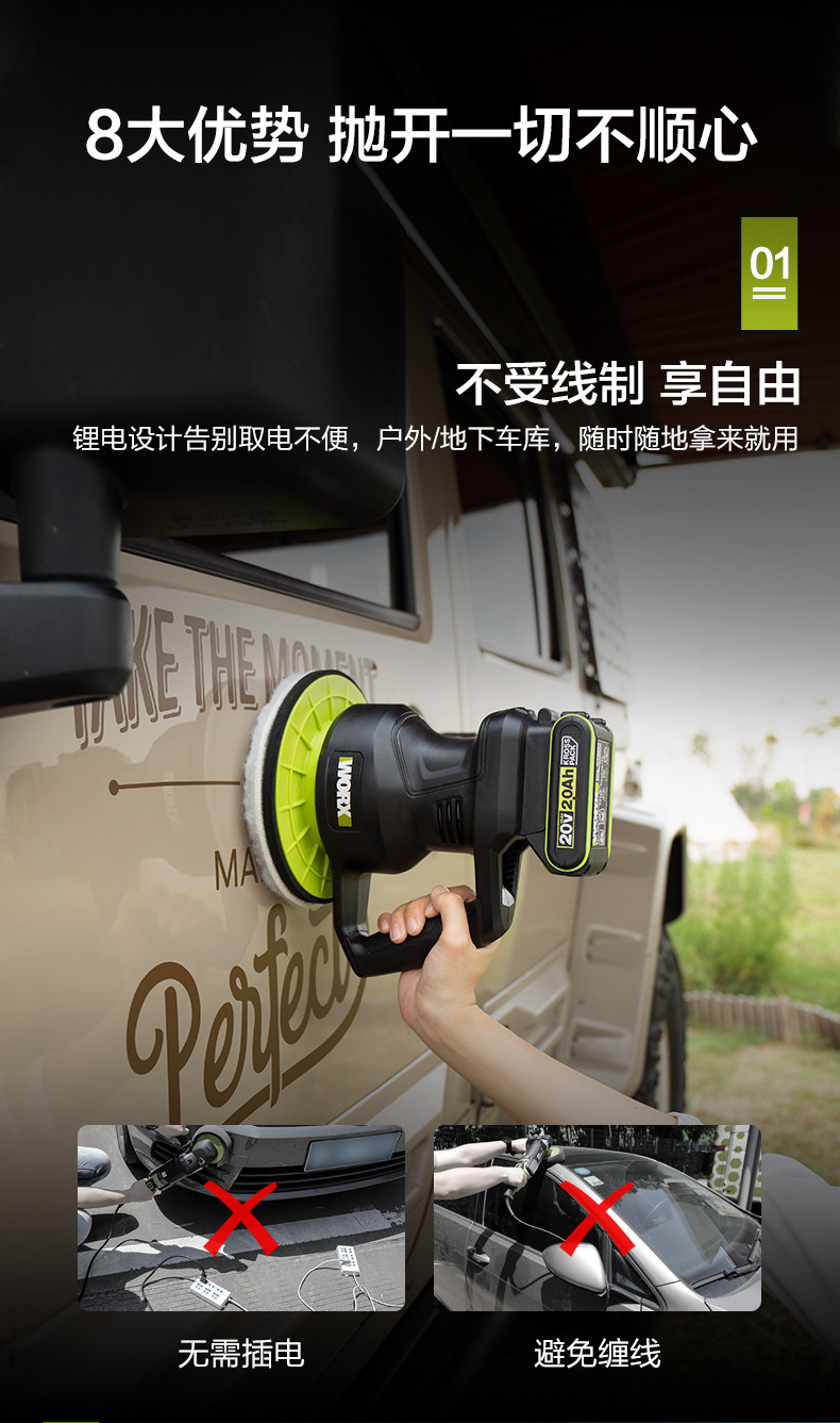 Добавить в список желаний Добавить к сравнению| сортировать по цвету | Полировальная машина WU858 с одним аккумулятором 20 В 2, 0 А·ч, [машина без комплектующих, без зарядного устройства и аккумулятора] WU858.9, Полировальная машина WU858 с одним аккумулятором 20 В 4, 0 А·ч |