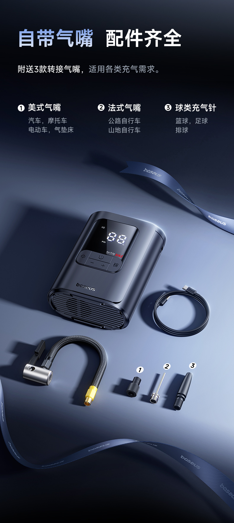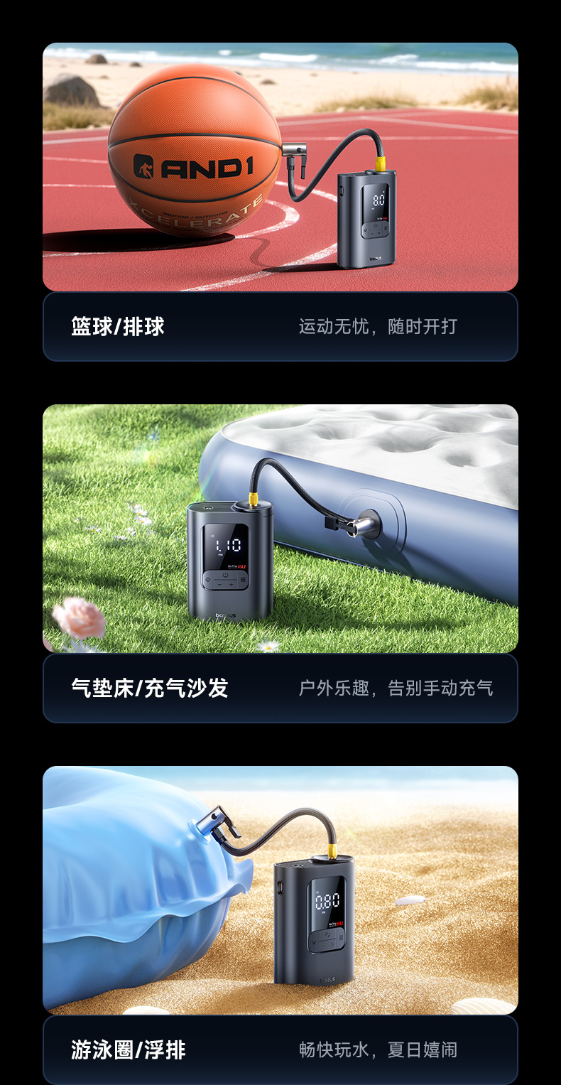 ДомМагазинВоздушный насос, устанавливаемый на транспортное средствоБеспроводной портативный электрический автомобильный насос Baseus с манометром для шин