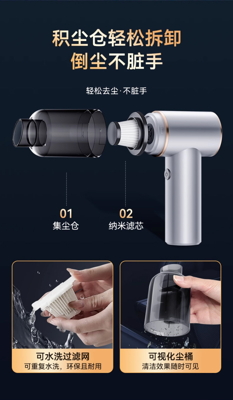 ДомМагазинАвтомобильный пылесосБеспроводной ручной автомобильный пылесос, маленький и компактный, новая модель 2025 года, высокая мощность всасывания, двойное применение: для автомобиля и дома — пылесос и воздуходувка