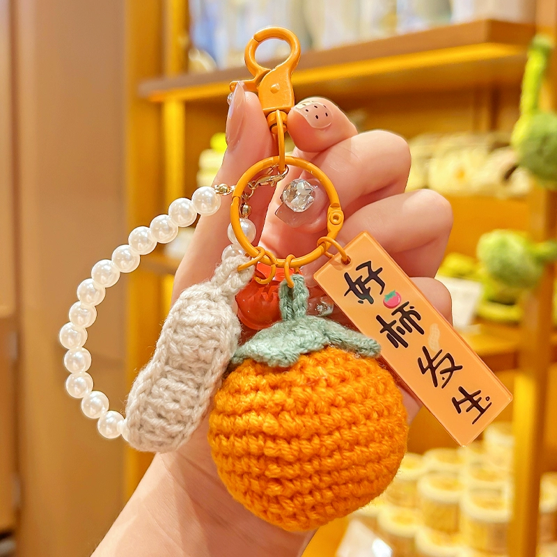 ДомМагазинАвтомобильные подвескиБрелок для ключей из пряжи цвета хурмы, изысканный женский оранжевый брелок, подвеска на рюкзак для пары