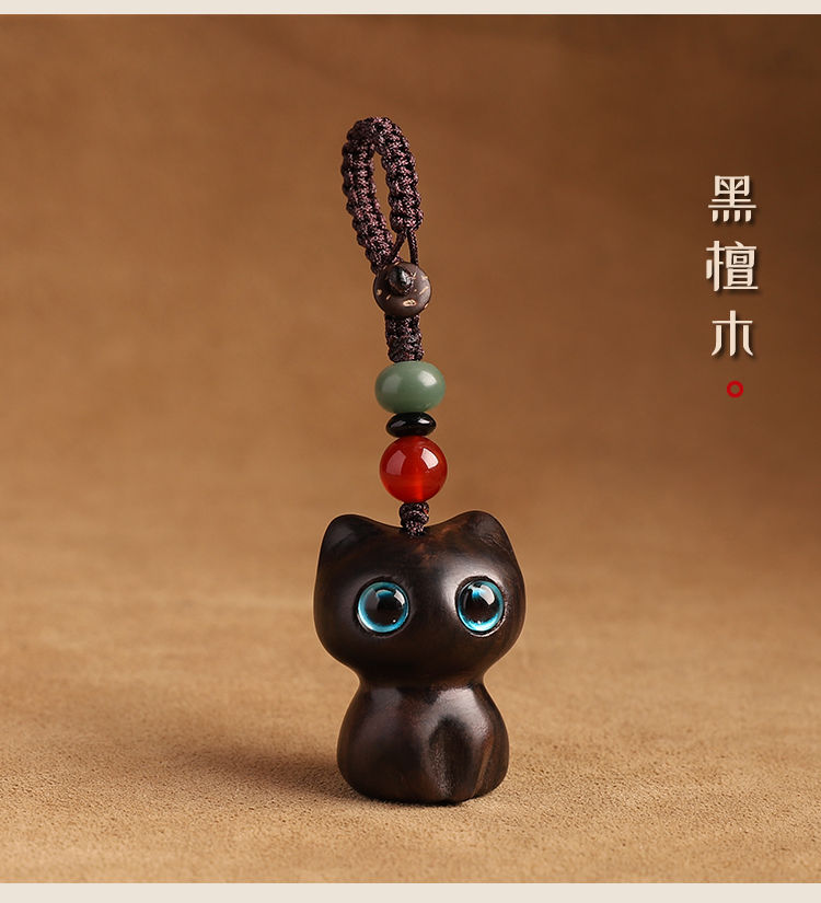 ДомМагазинАвтомобильные подвескиБрелок-подвеска в виде автомобиля в виде счастливого кота из черного дерева, изысканный и креативный мужской и женский брелок-подвеска на цепочку для мобильного телефона, украшение на рюкзак из веревки