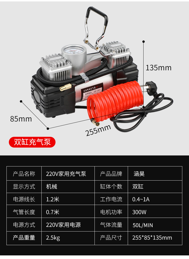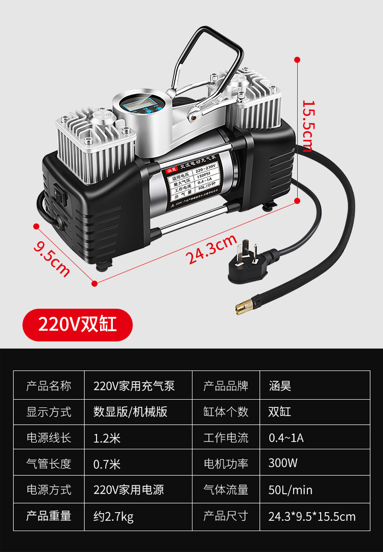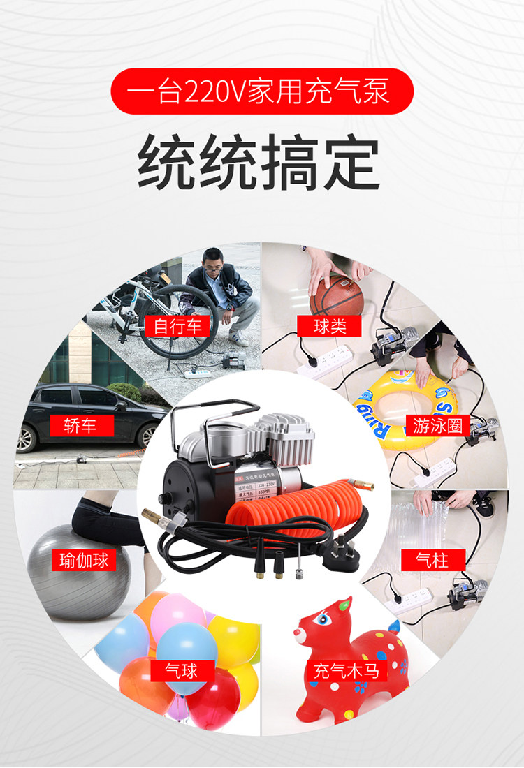 ДомМагазинвоздушный насосБытовой двухцилиндровый электрический насос 220 В для автомобильных шин, баскетбольных колонок, плавательных кругов