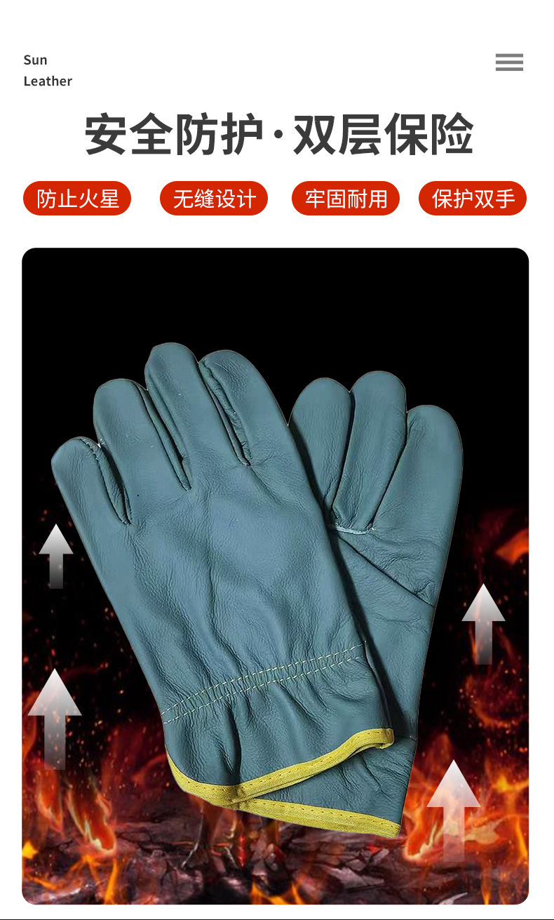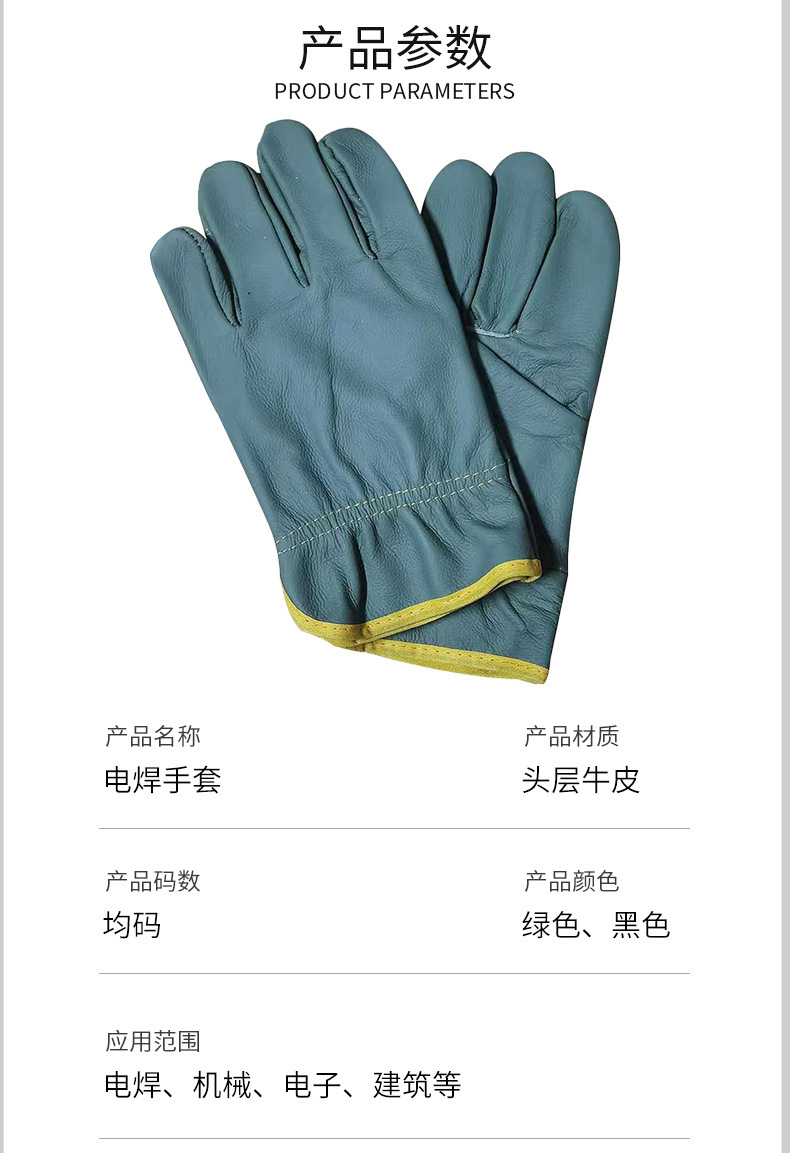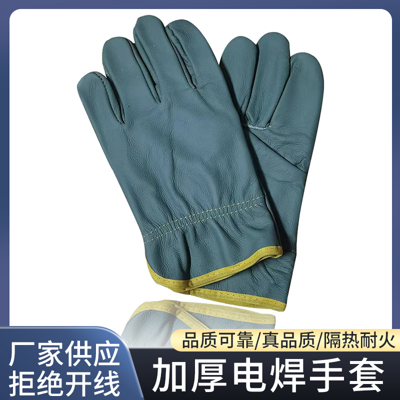 Верхний слой из износостойкой коровьей кожи, перчатки для сварки, противоскользящие и противоожоговые, утолщенные, короткие, термостойкие, с защитой пальцев от порезов при дуговой сварке.