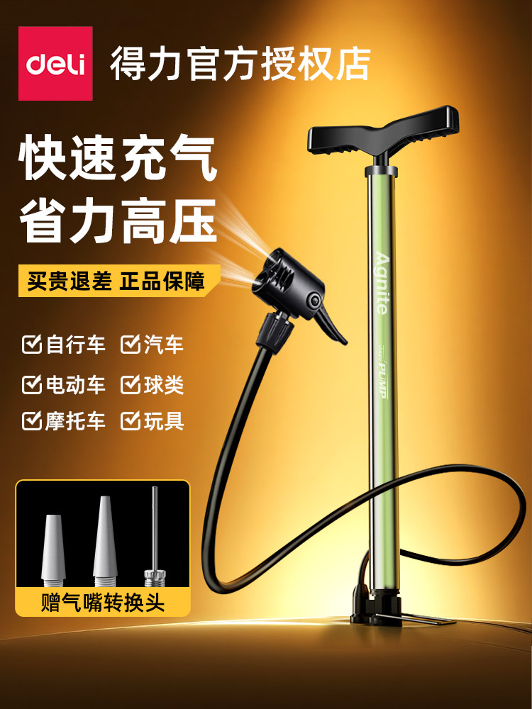 ДомМагазинвоздушный насосВоздушный насос Deli для езды на велосипеде на открытом воздухе, накачивания велосипедов высоким давлением, электровелосипедов, горных велосипедов, шоссейных велосипедов и баскетбола.