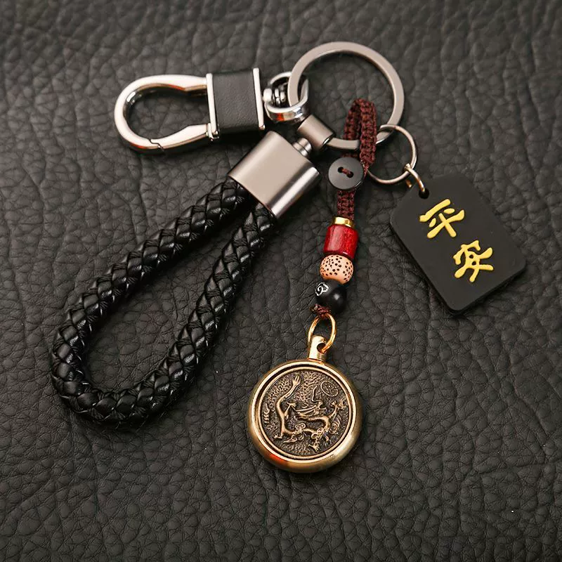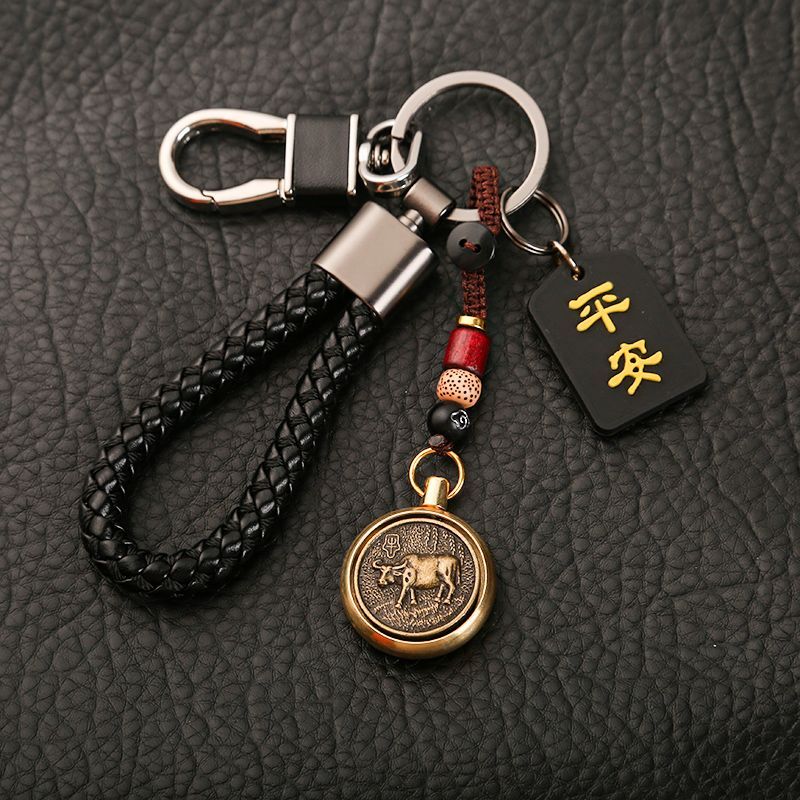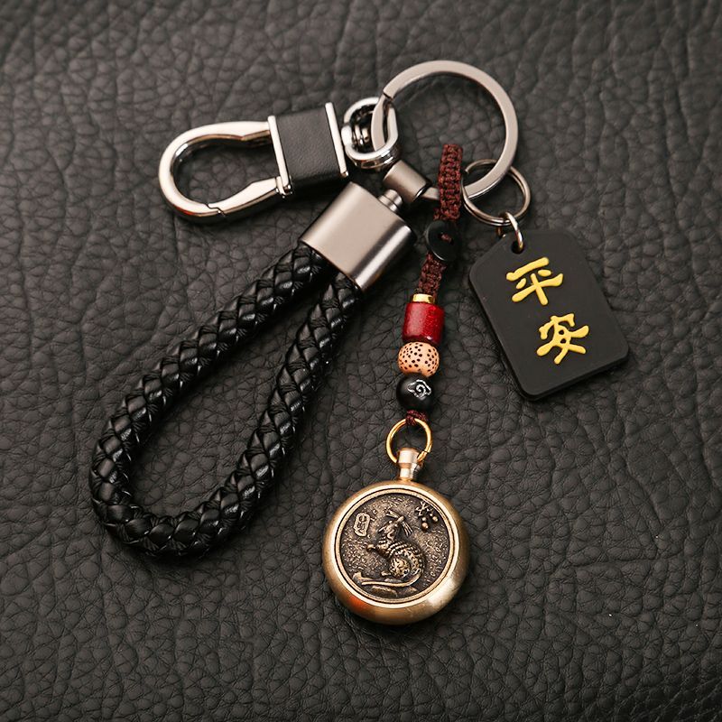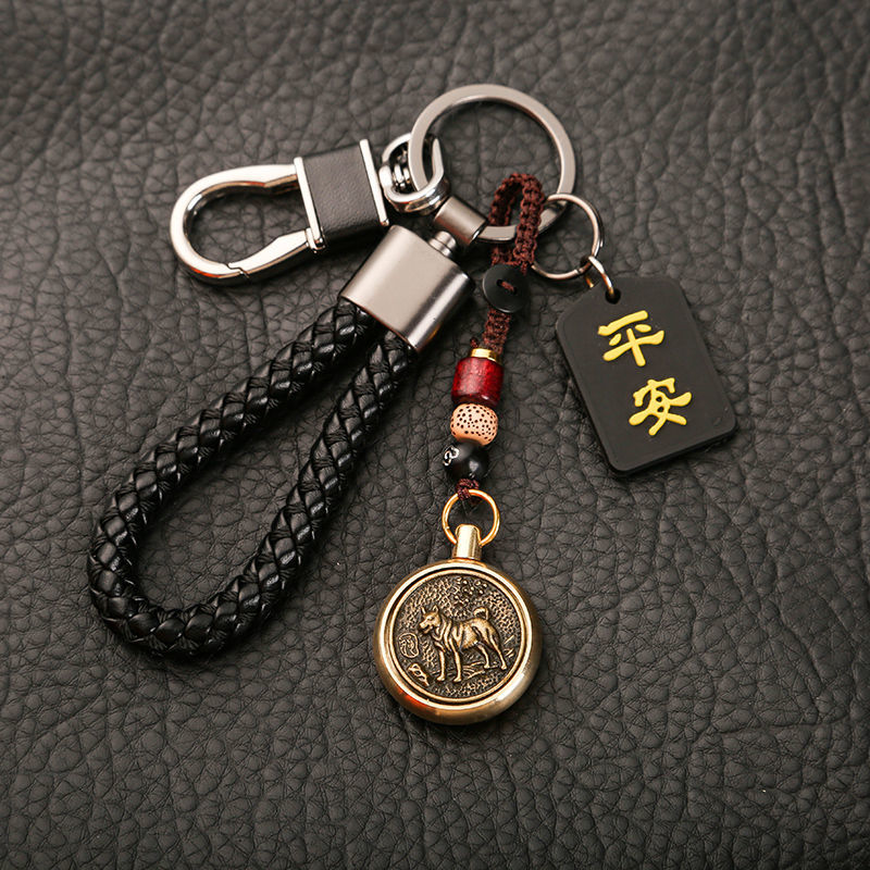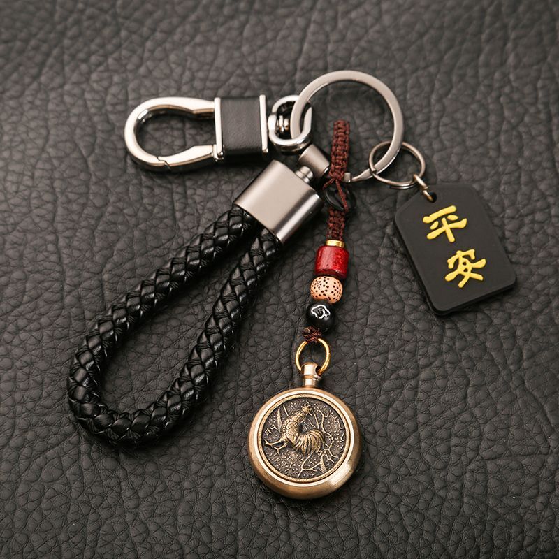 ДомМагазинАвтомобильные подвескиВращающийся кулон-талисман с китайским зодиаком, автомобильный брелок с защитой от потерь, высококачественный брелок для ключей для мужчин и женщин, креативный браслет
