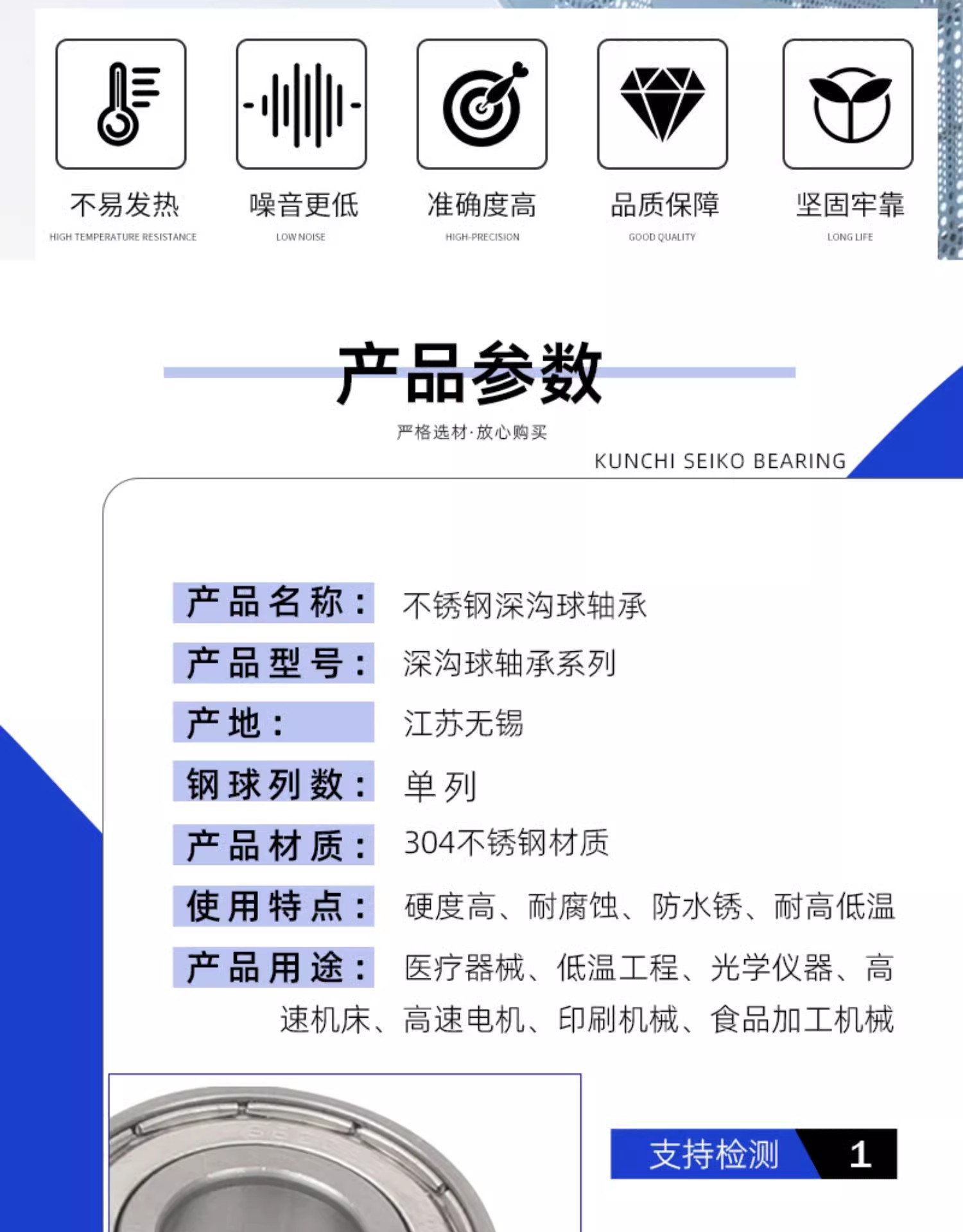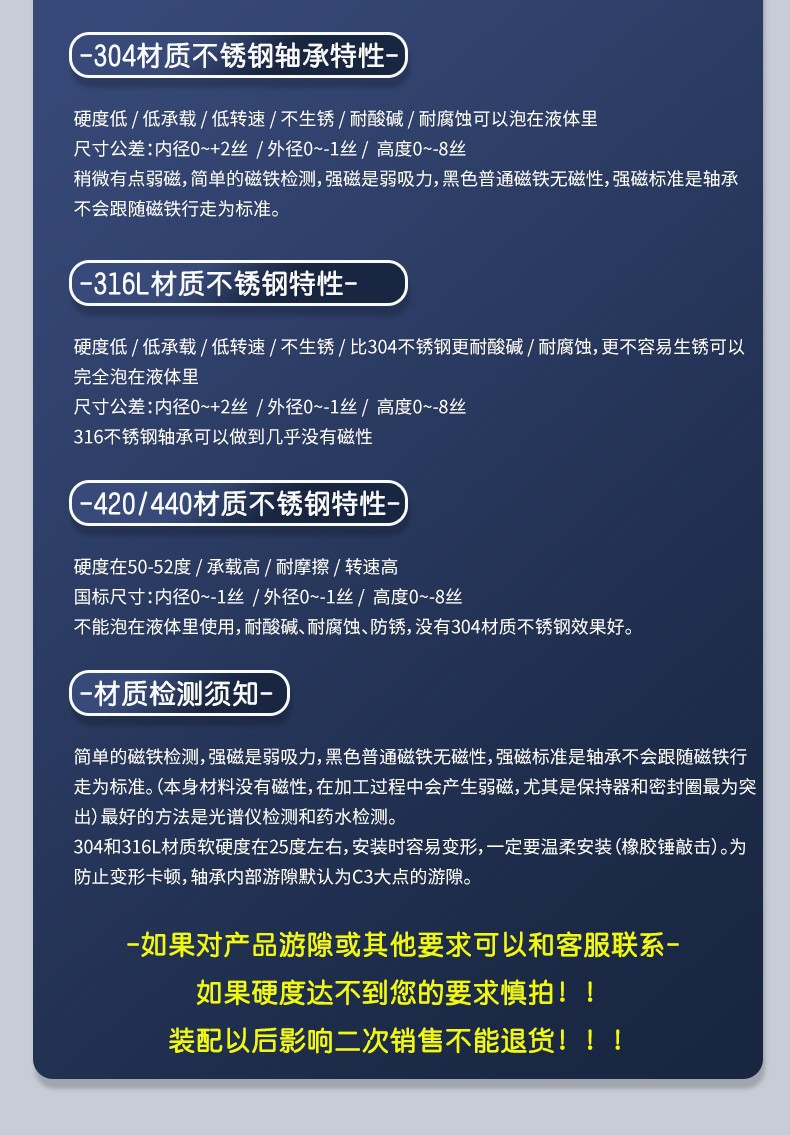 轴承材质 : 不锈钢304材质